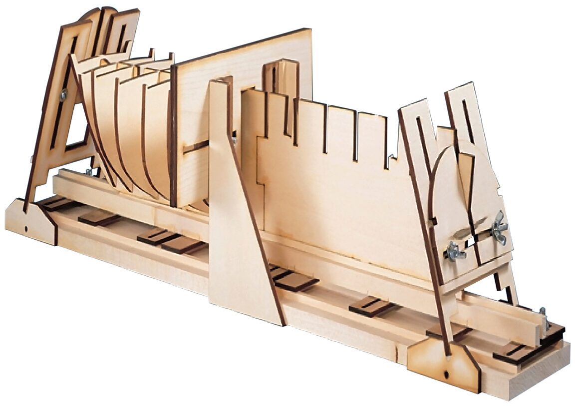 Werkzeug aus gelasertem Holz und Schrauben. Damit wird jeder genau ausgerichtet. Geeignet für nahezu jede Kiel-Größe, da es durch Verschraubung stufenlos verstellt werden kann. Anleitung in Englisch.