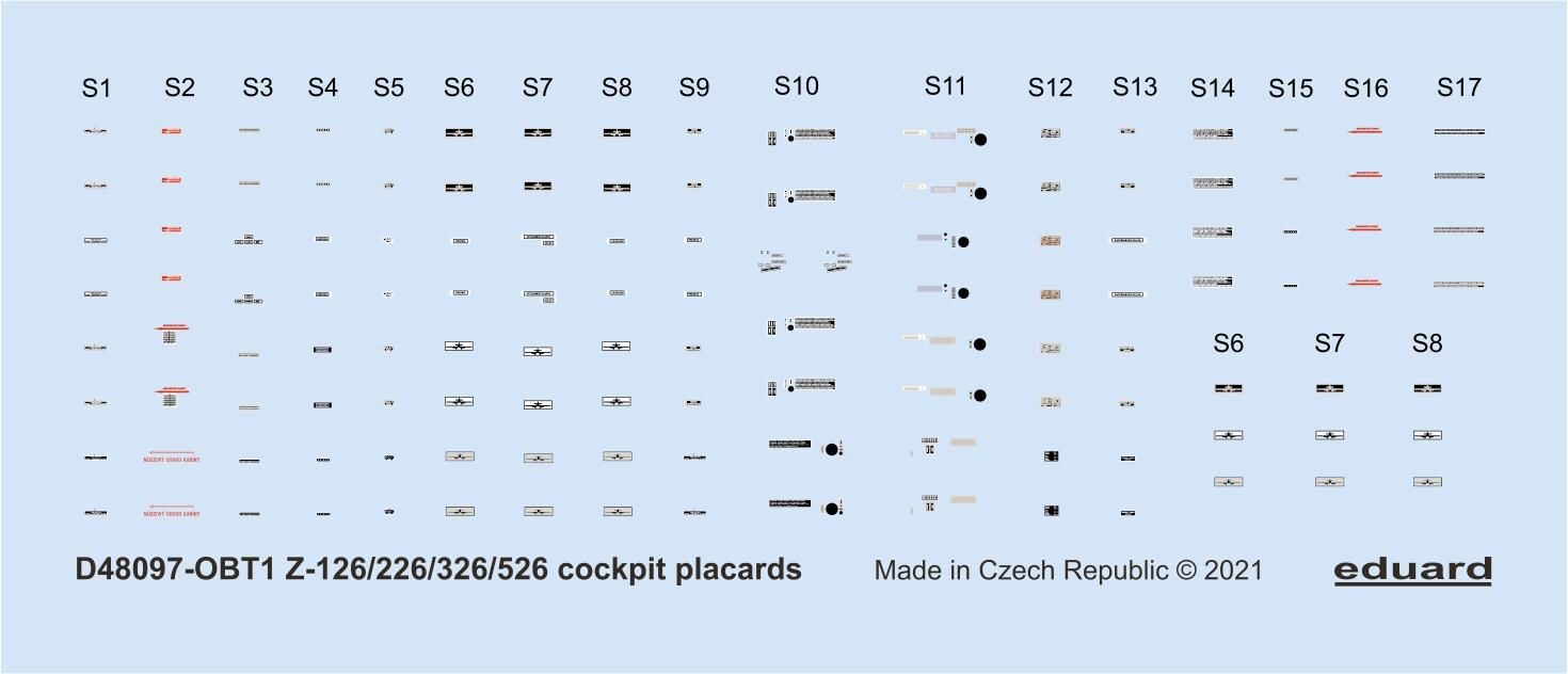 Z-126/226/326/526 cockpit placards 1/48 EDUARD