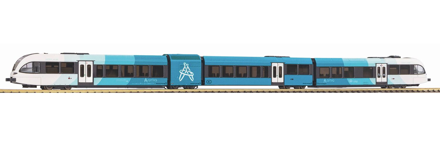 Neuheit 2022: Dieseltriebwagen GTW 2/6 von ARRIVA der Epoche VI hat einen Motor mit Schwungmasse, eine Schnittstelle für PluX12 Decoder, LED Stirnbeleuchtung mit Fahrtrichtung weiß/rot wechselnd, schaltbare Innenbeleuchtung