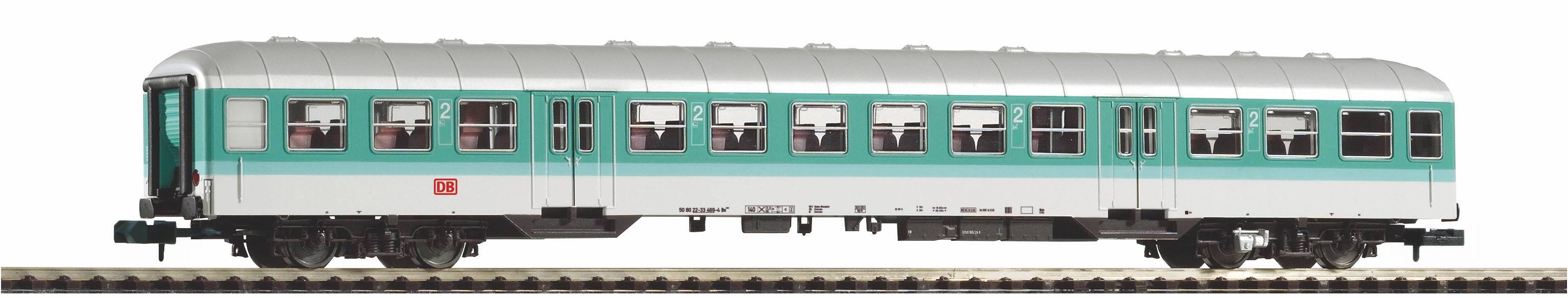 Neuheit 2022: Druckvariante des 2. Klasse Personenwagens der DB AG in mintgrüner Lackierung der Epoche V. Als Silberling wird unter Eisenbahnfans eine Familie von Nahverkehrswagen der Deutschen Bundesbahn bezeichnet. Den Namen „Silberlinge“ verdanken die Fahrzeuge ihrem Wagenkasten aus Edelstahl. Über 5000 Exemplare wurden zwischen 1961 und 1980 gebaut und waren bis Anfang 2020 bei DB Regio anzutreffen. Nach ihrem Nebengattungszeichen werden die Wagen auch gerne als n-Wagen bezeichnet. Mit den n-Wagen hat PIKO einen Fahrzeugtyp ins Sortiment aufgenommen, der praktisch auf keiner Modellbahn fehlen darf, deren Thema bei der Bundesbahn oder der DB AG angesiedelt ist. Wie beim Vorbild unterscheiden sich auch die Modelle abhängig von der Wagenklasse in Fensteraufteilung und Inneneinrichtung, die Stichmaße wurden vorbildgerecht in die Baugröße N umgesetzt. Formenbau auf höchstem Niveau sorgt für äußerst plastisch wirkende Drehgestelle und die von PIKO gewohnte hochwertige Lackierung und Bedruckung verleiht den Fahrzeugen ein hervorragendes Finish. Die Fahrzeuge sind für das unkomplizierte Nachrüsten einer Innenbeleuchtung vorbereitet.