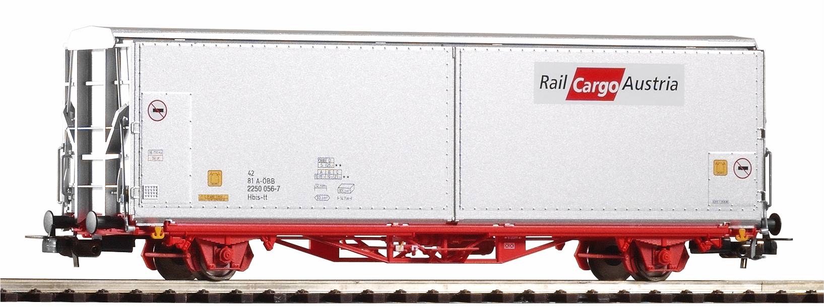 Neuheit 2022: Druckvariante des Großraumschiebewandwagens Hbis-tt im Design Rail-Cargo Austria der Epoche V.