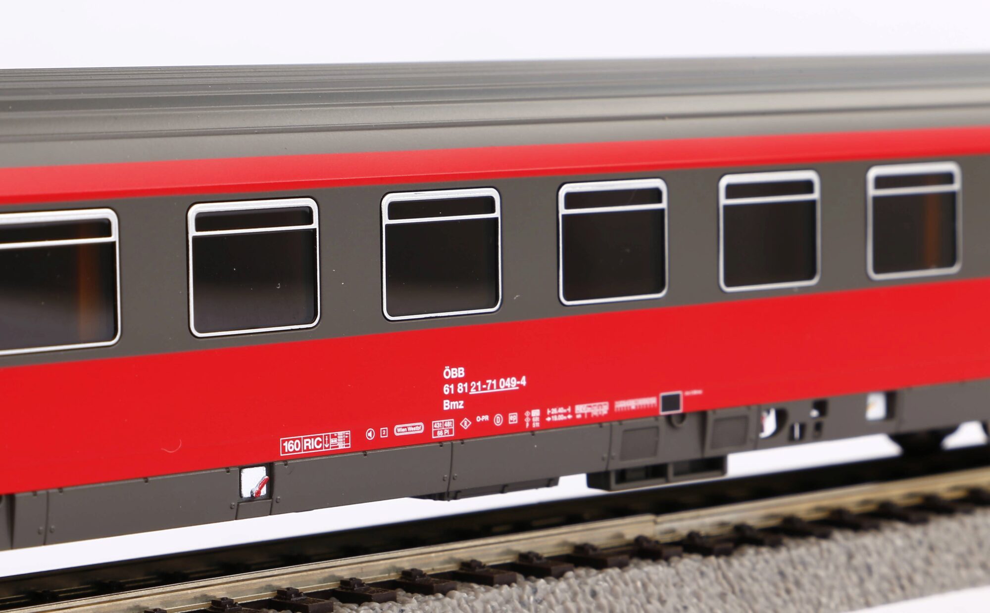 Neuheit 2022: Druckvariante der Schnellzugwagen Eurofima im Design eines 2. Klasse Wagens der ÖBB in der Epoche IV. In den 1970er-Jahren wuchsen Europas Eisenbahnen technisch zusammen, ohne dabei ihren eigenständigen Charakter zu verlieren. Dies manifestierte sich in der gemeinsamen Beschaffung moderner Reisezugwagen. Diese seinerzeit wegweisende Konstruktion bereichert auch das PIKO Sortiment und ergänzt die Wagen des IC ʽ79 um den legendären Avmz 207 sowie die Möglichkeit internationale Fernzüge zu arrangieren. Die Fahrzeuge wurden präzise im Maßstab 1:87 umgesetzt und zeichnen sich durch absolut stimmige Form- und Farbgebung aus. Als Muster zeitgemäßen Formenbaus können die filigranen Drehgestelle betrachtet werden, aber auch die präzisen Gravuren der Dachsicken zeugen hiervon. Für einen abwechslungsreichen Modellbahnbetrieb kann ganz einfach eine individuell für diesen Wagentyp konstruierte LED-Innenbeleuchtung nachgerüstet werden. Die Verbreitung des Vorbilds lässt zahlreiche Varianten verschiedener Bahnverwaltungen zu und repräsentiert so ein europäisches Eisenbahnmodell. Vielleicht wäre es auch bei der großen Bahn wieder Zeit für neue gesamteuropäische Eisenbahnwagen …