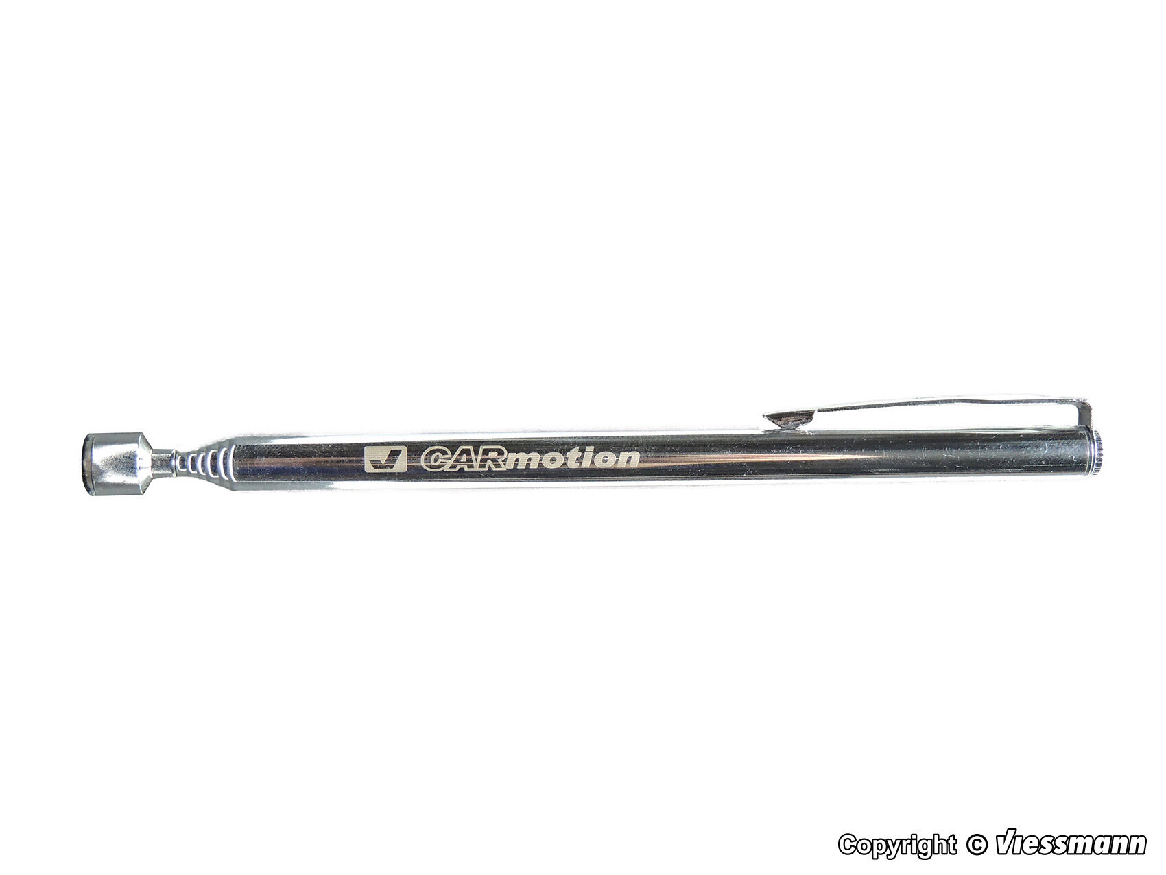 Mit Hilfe des Magnetstabs können Sie Ihre CarMotion Fahrzeuge leicht auch aus größeren Entfernungen auf Ihrer Anlage ein- und ausschalten, ohne das Fahrzeug von der Straße zu heben. Länge: 12,6 – 64 cm.