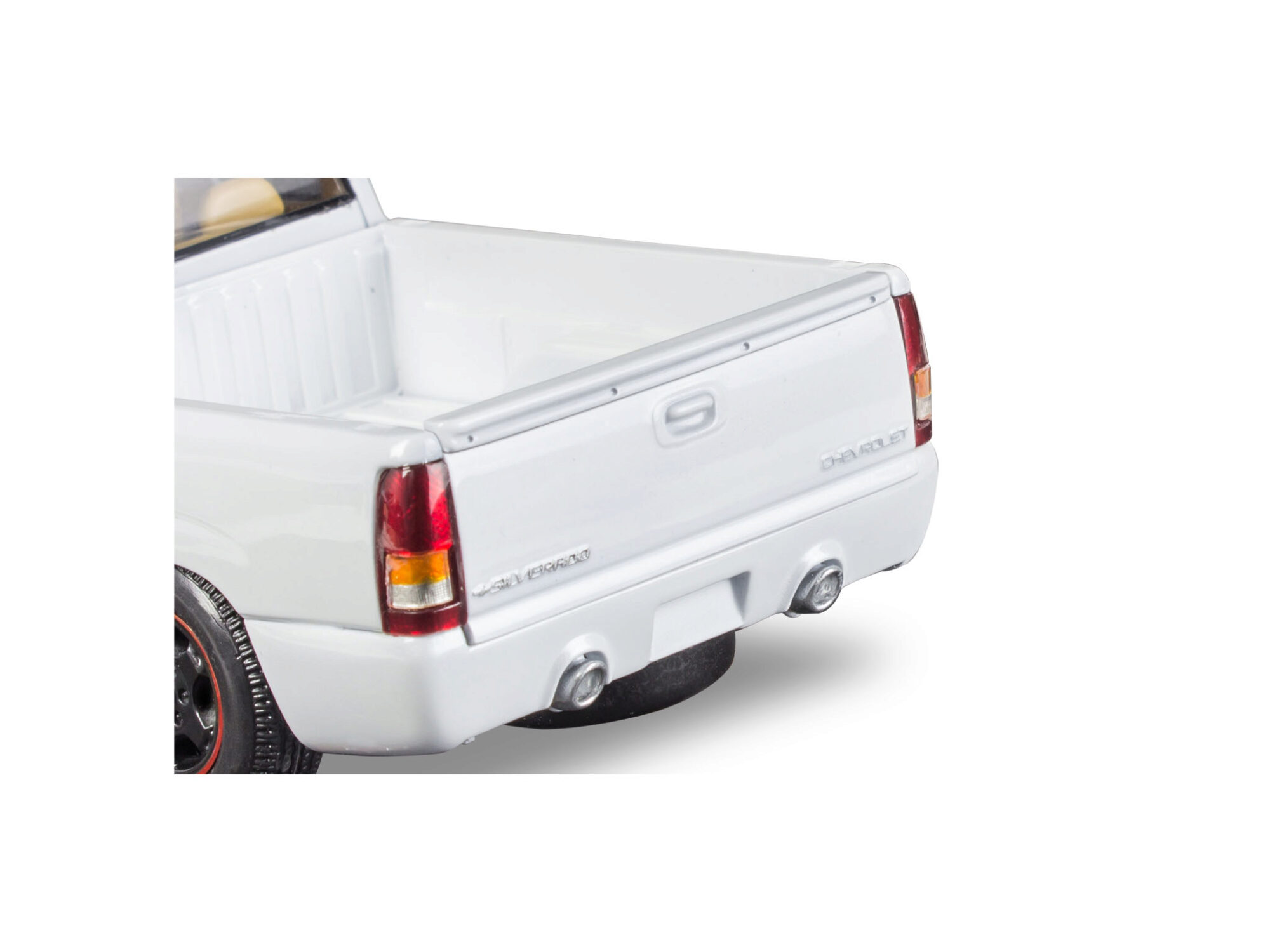 Der Chevy Silverado war schon immer einer der bestaussehenden Pickups auf der Straße. Aber fügen Sie einige radikale Karosseriemodifikationen hinzu, wie z. B. einen geformten Kühlergrill, einen Lufteinlass mit Nebelscheinwerfern, eine ungewöhnliche Motorhauben-Hutze, eine maßgeschneiderte hintere Überrollwanne, eine extrem niedrige Sitzposition und riesige maßgeschneiderte Räder , und schon haben Sie die Spitze des Sport-Truck-Stylings!