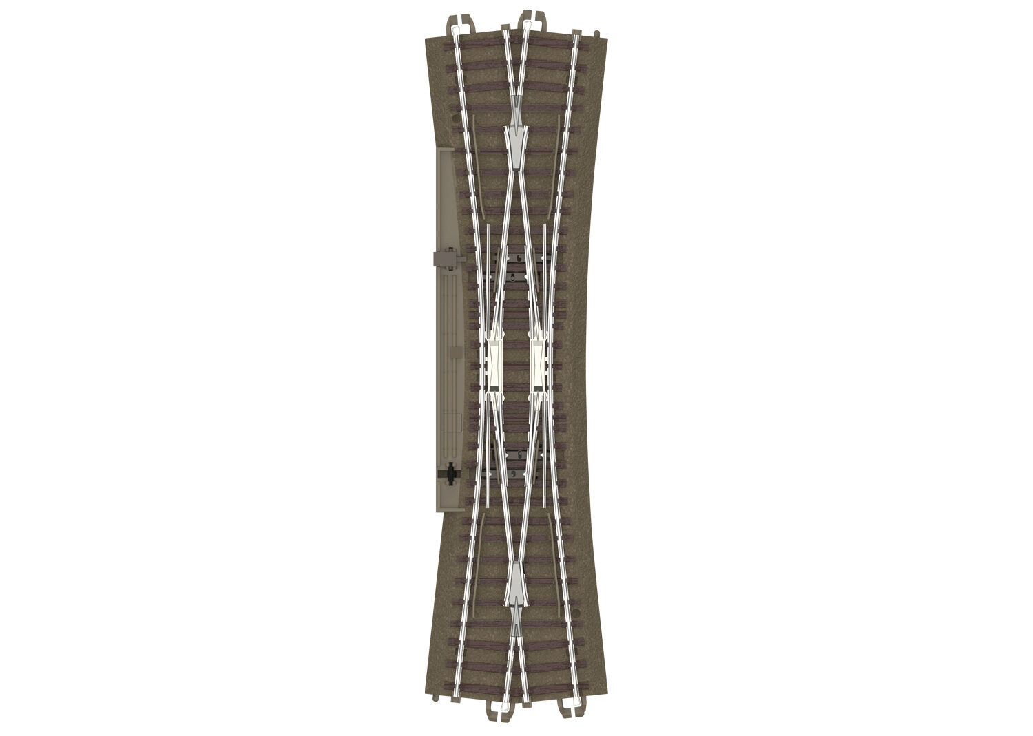 An den Enden der Doppelkreuzungsweiche werden 4 Gleise 62071 benötigt (nicht in 62720 enthalten). 2 passende Böschungskeile liegen bei.