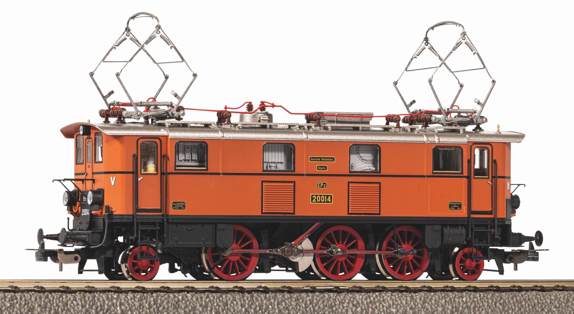 Der Stangenantrieb der BR E 32 mit seinen Speichenrädern, in kurzer Bauform, lässt die Verwandtschaft der Altbau-Elloks zu den Dampfloks durchscheinen, mit 1’C1‘ Achsanordnung, wie beim Original. Das Modell entspricht dem Betriebszustand der Epoche III. Besonderheiten sind die fein zu erkennenden Detaillierungen, wie die Nietung am Dach, angesetzte Teile, wie Sandkästen, Glocke, Bremsschläuche und Handstangen. Zeitgenössische Lampen, sowie die filigranen Scherenstromabnehmer vom Typ SBS 10 runden das Modell optisch ab. Technisch weiß das Modell mit einem serienmäßig eingebauten Lichtwechsel in LED-Technik mit roter Schlussbeleuchtung zu begeistern. Die Soundversion verfüg ab Werk über einen passenden PIKO Sound-Decoder inkl. Lautsprecher. Die Formvariante gibt den Betriebszustand der EP2 der DR Gruppenverwaltug Bayern in Epoche II wieder.