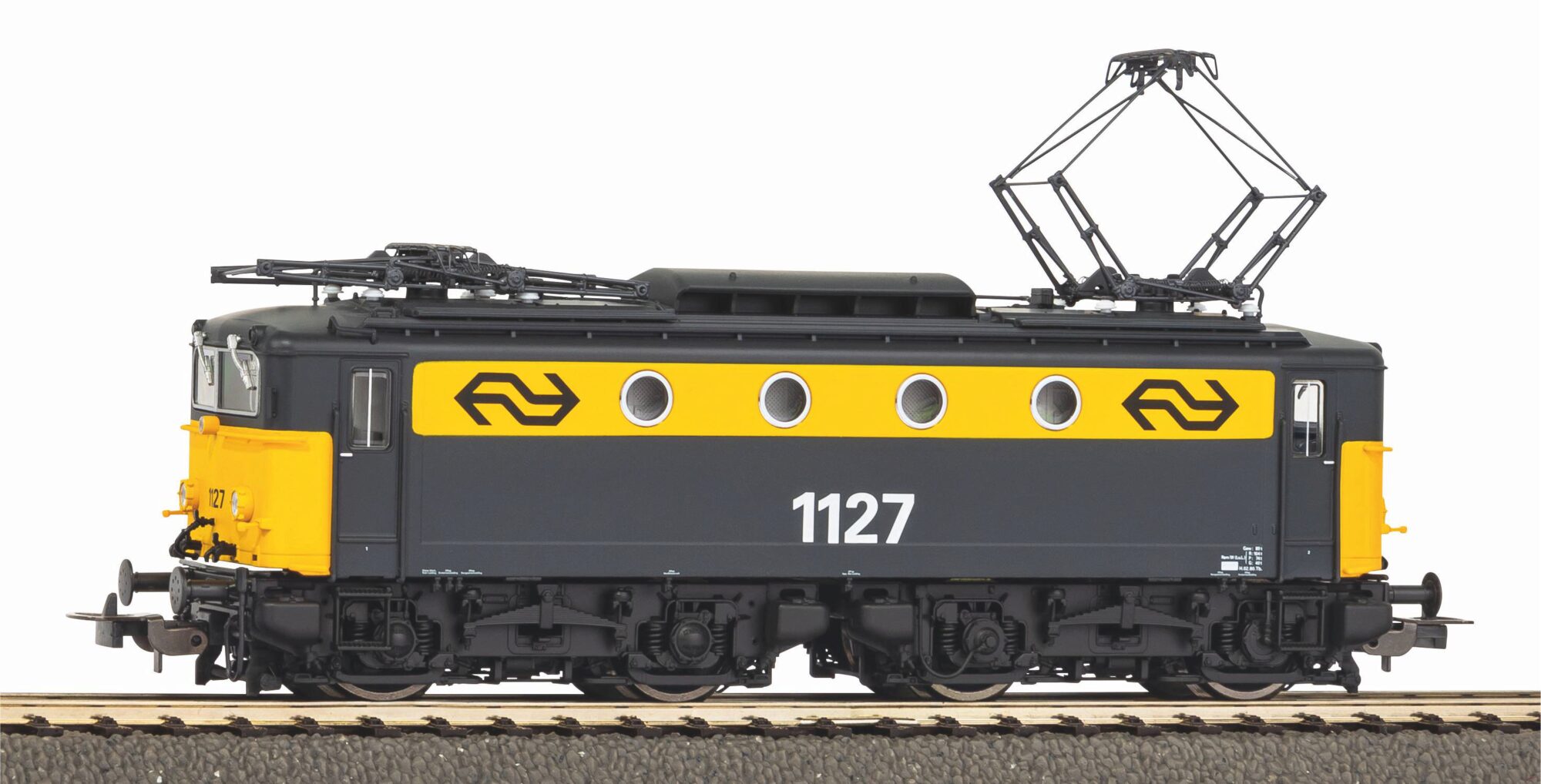 Druckvariante der Rh 1100 der NS in Epoche IV. Das PIKO Expert Modell der Reihe 1100 der Niederländischen Staatsbahnen (NS) überzeugt mit einem gelungenen Formenbau, stimmigen Dachrundungen und vielen angesetzten Teilen, wie feine Isolatoren und Stromabnehmer, freistehende Griffstangen und Treppen. Das Modell besitzt die passenden Lampenformen, scharf gravierte Drehgestellblenden mit realistischen Federpaketnachbildungen und originalgetreue Nachbildungen der Pufferbohlen. Die Beleuchtung erfolgt mittels LEDs. Die Führerstand- und Maschinenraumbeleuchtungen sowie die fahrtrichtungsabhängig funktionierenden Front- und Schlusslichter sind mit einem digital schaltbar. Der schwere Rahmen aus Zinkdruckguss und der Motor mit zwei großen, präzise ausgewuchteten Schwungmassen sorgen für ausgezeichnete Fahreigenschaften und hohe Zugkräfte. Das Modell verfügt über einen PIKO Sound-Decoder sowie einen großen Lautsprecher.