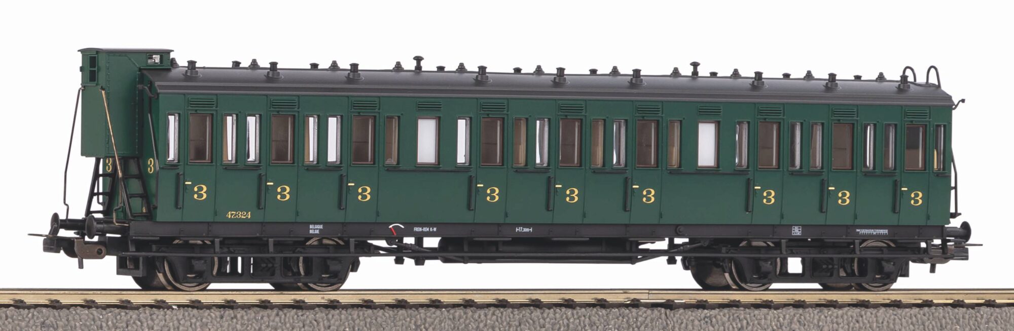 Druckvariante des 4-achsigen Abteilwagens 3. Klasse mit Bremserhaus der SNCB in Epoche III.