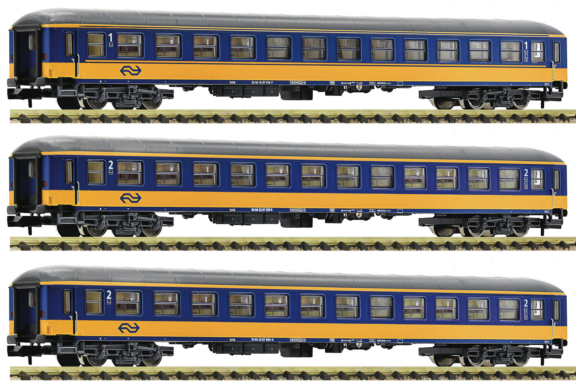 Wagenset mit drei Schnellzugwagen, Typ ICK (ex Bm 235, DB AG), der Niederländischen Staatsbahnen.