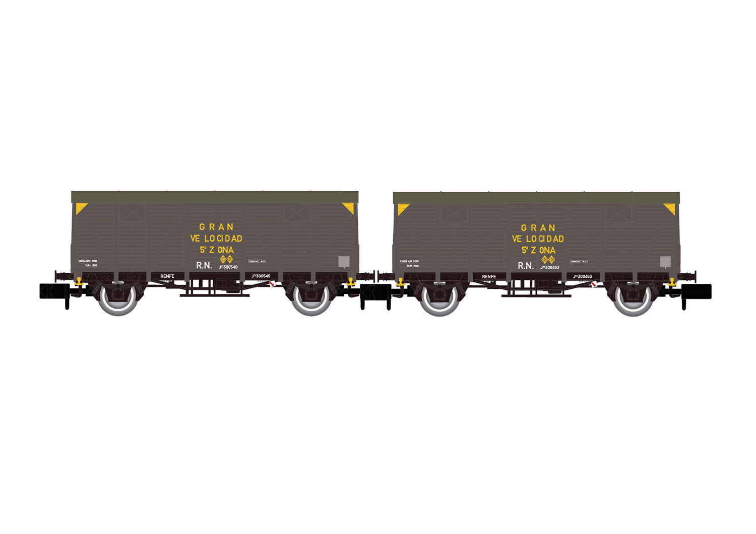 RENFE 2er-Set 2-achsiger gedeckter Güterwagen J300.000 grau gran velocidad Ep.III