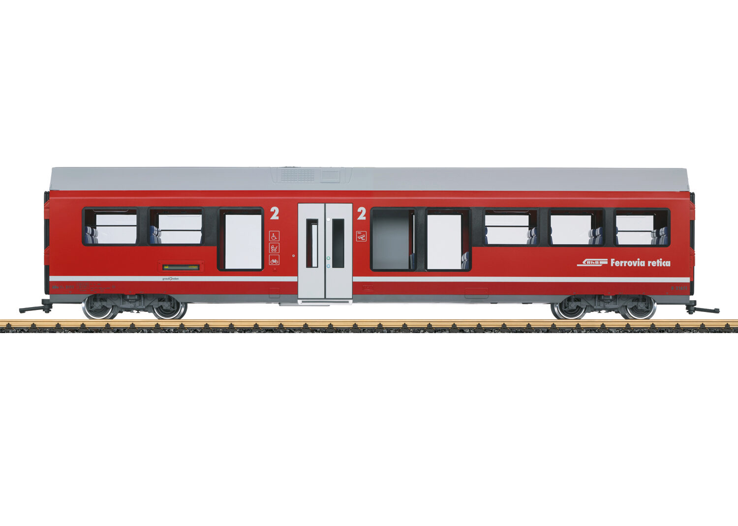 Modell des ersten Zwischenwagens des Triebzuges der Baureihe ABe 4/16 Capricorn der RhB. Originalgetreue Farbgebung und Beschriftung der Epoche VI. Ausgerüstet mit Innenbeleuchtung und im Digitalbetrieb schaltbarer Beleuchtung der Zugzielanzeigen, die vom Triebkopf aus angesteuert werden. Durchgehende elektrische Verbindung, um den Wagen in den Zugverband zwischen Triebkopf und Steuerwagen einsetzen zu können, ein 11-poliges Verbindungskabel liegt bei. Verstellbare Spezialkupplung, mit der der Wagenabstand auf den zu befahrenden Mindestradius eingestellt werden kann. Länge 77 cm.