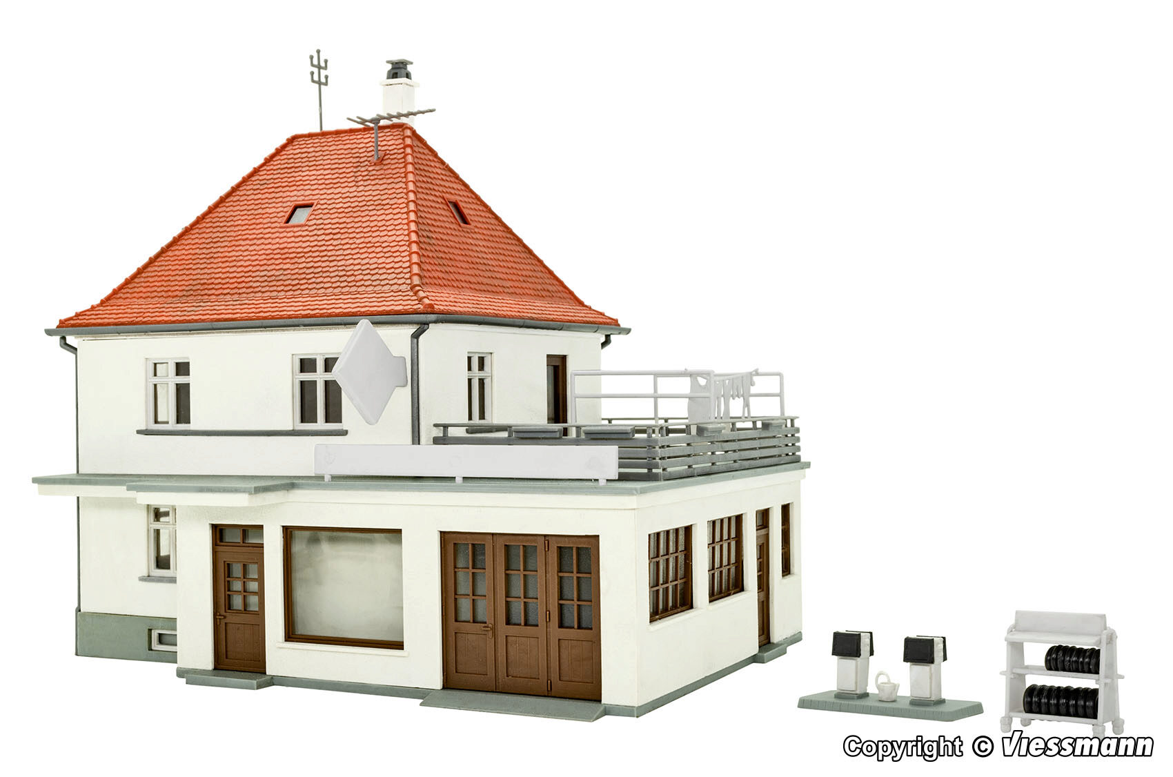 Bausatz. Wohnhaus mit Werkstatt und Zaun. Passend dazu Viessmann Art. 1538 H0 Schweißer mit flackerndem Schweißlicht. Haus: L 16,2 x B 12,5 x H 14,5 cm