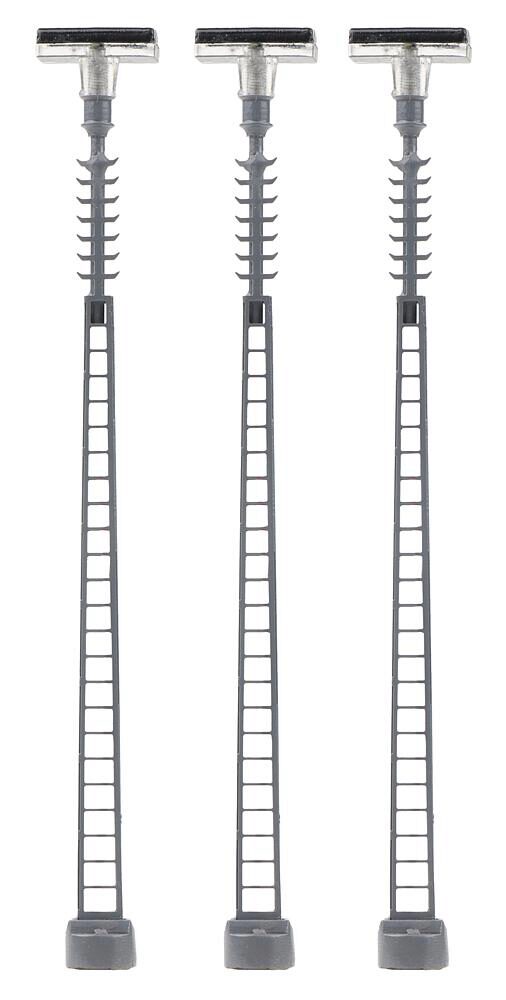 Modell einer weitverbreiteten Aufsatzleuchte mit Flachgittermast aus Metall. Besonders geeignet zur Beleuchtung von bahnnahen Szenerien, wie Bahnhöfen, Betriebswerken oder Gleisfeldern. Die zweiflammige Leuchte ist mit langlebiger LED-Technik ausgestattet.