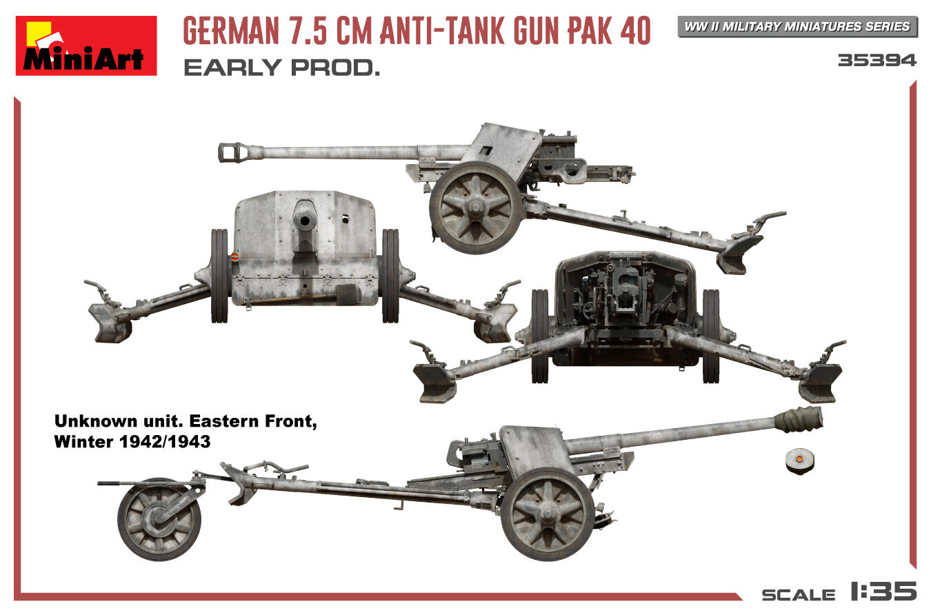 German 7.5cm Anti-Tank Gun PaK 40. Early Prod