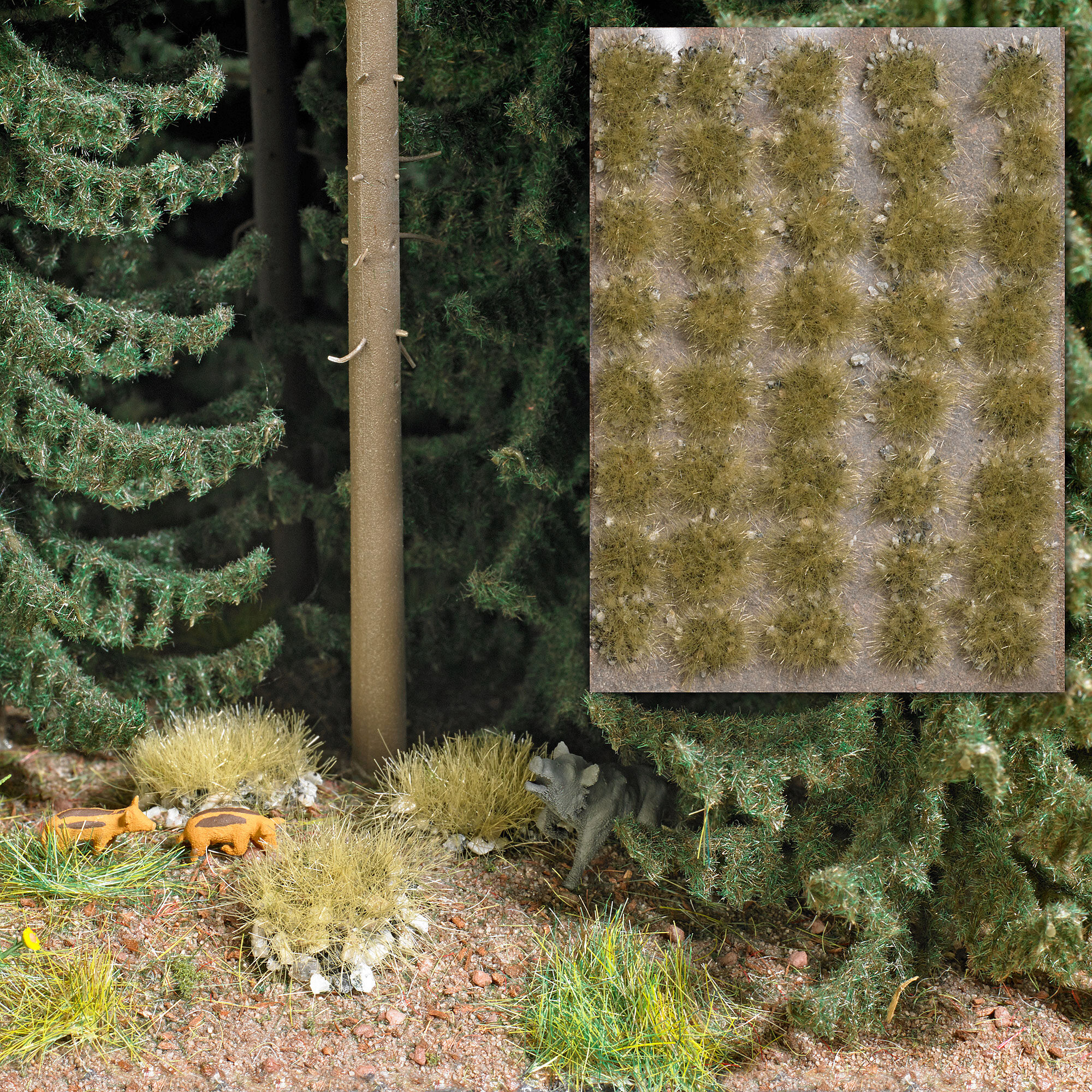 Busch Grasbüschel sind für alle Spurweiten verwendbar und können durch harmonisch aufeinander abgestimmte Farben beliebig miteinander kombiniert werden. Sie sind auf einer Trägerfolie angebracht. Es gibt bereits 16 Grasbüschel Varianten (3511 - 3548). Diese neuen Packungen beinhalten zusätzlich echte Steine, die ganz natürlich um jeden einzelnen Grasbüschel herum verteilt sind. Super Gestaltung für Felder, Wegesrand, Bahndamm oder in der Nähe von Bachläufen.