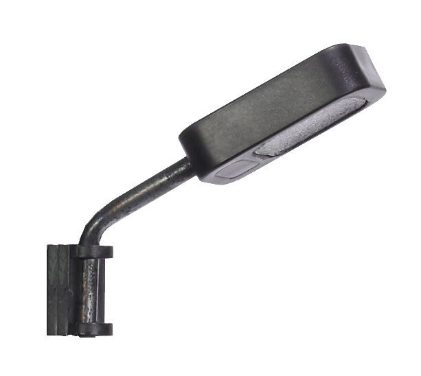 Ansatzleuchte passend zur Gittermastlampe Nr. 10802. Für Bahnhofsgebäude, Güterschuppen, Industriegebäude, Stadthäuser und Straßenszenen. Der Lampenkopf ist mit einer Streuscheibe zur optimalen Verteilung des realistisch kaltweißen Neon-Lichtes ausgestattet. Länge: ca. 30 mm.