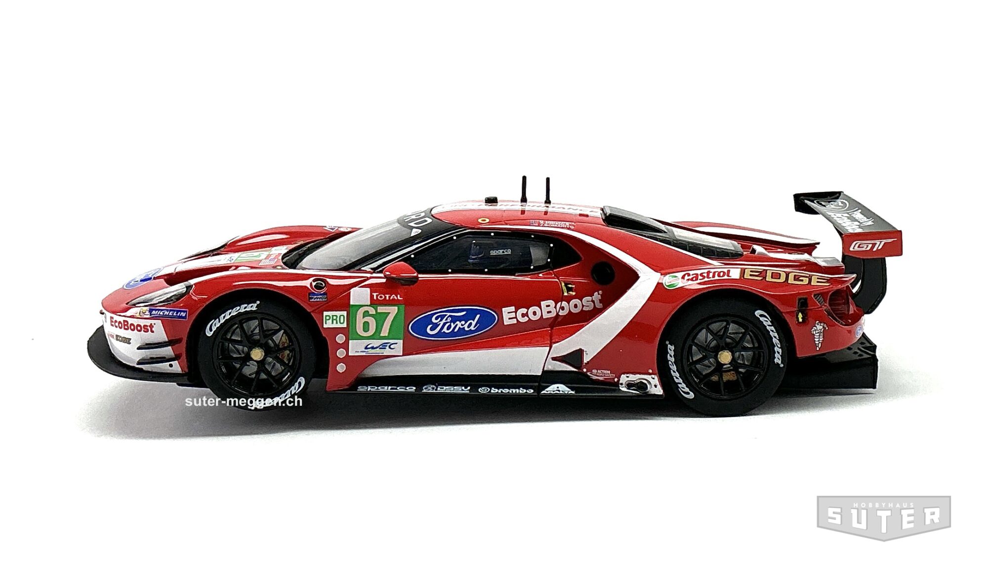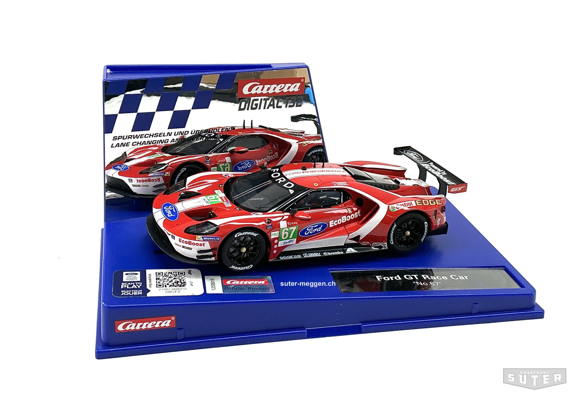 Der Carrera DIGITAL 132 Ford GT Race Car „No. 67“ ist die Modellversion des Rennwagens Ford GT. Mit dem Ford GT verabschiedet sich der Rennwagenhersteller aus Detroid vorerst von Nordfrankreichs legendärem Langstreckenrennen. Die Nummer 67 ist eine Anspielung auf das bekannte Siegerauto von Gurney und Foyt im Ford MK IV aus dem Jahr 1967. Die auffällige rot-weiß Lackierung garantiert dem Fahrzeug die vollkommene Aufmerksamkeit der Zuschauer. Der elegante Sportwagen wurde vom Hersteller Chip Ganassi Racing in streng limitierter Stückzahl verkauft und erobert mit 656 PS die Langstrecken-Piste.