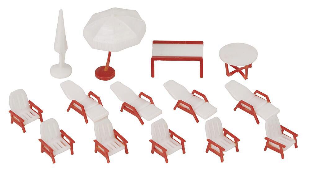 Inhalt: Eingangsbereich, Schwimmbad, Freiluftduschen, Liegebänke, Sonnenschirme, Spielplatz, Tischtennisplatten, Minigolfanlage