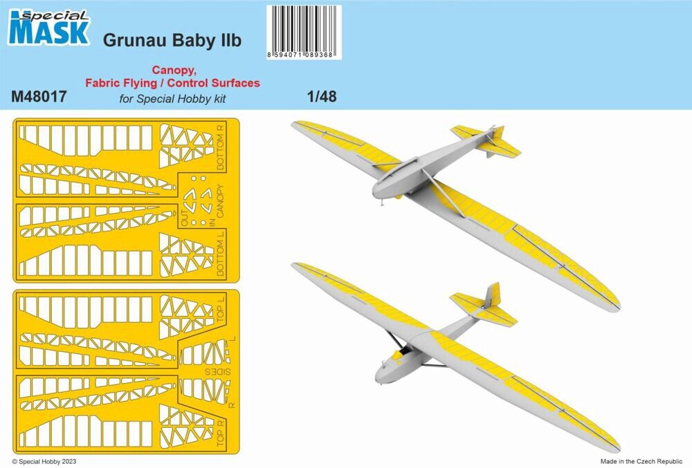 Grunau Baby IIB Mask Canopy, Fabric Flying / Control Surfaces 1/48