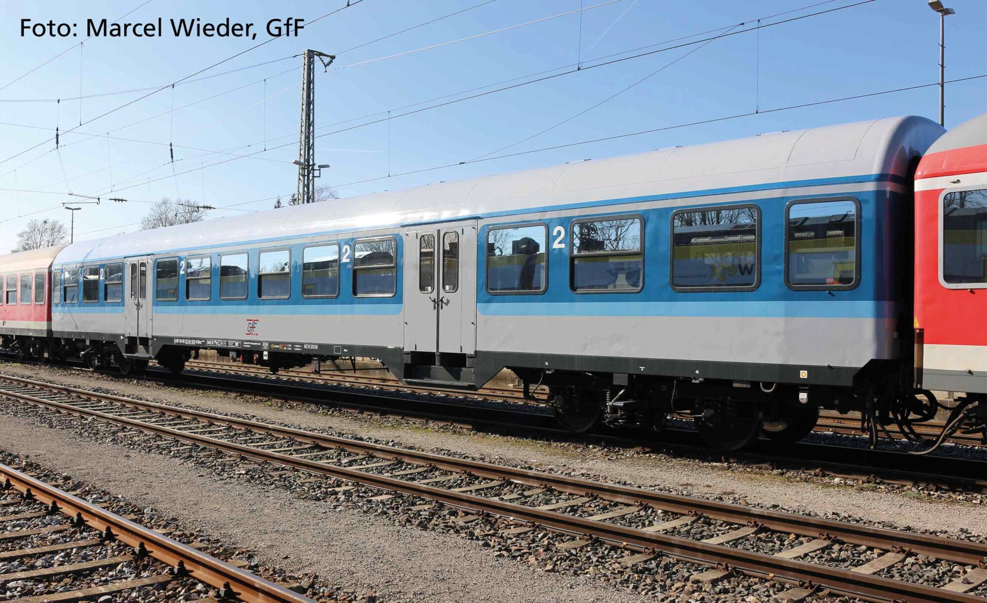 Neuheit 2024: Druckvariante der bekannten n-Personenwagen als 2. Klasse Wagen der GfF in Epoche VI. Das Wagenmodell überzeugt durch die gelungene, maßstäbliche Wiedergabe der Proportionen des Vorbildes und ausgezeichnete Rolleigenschaften.