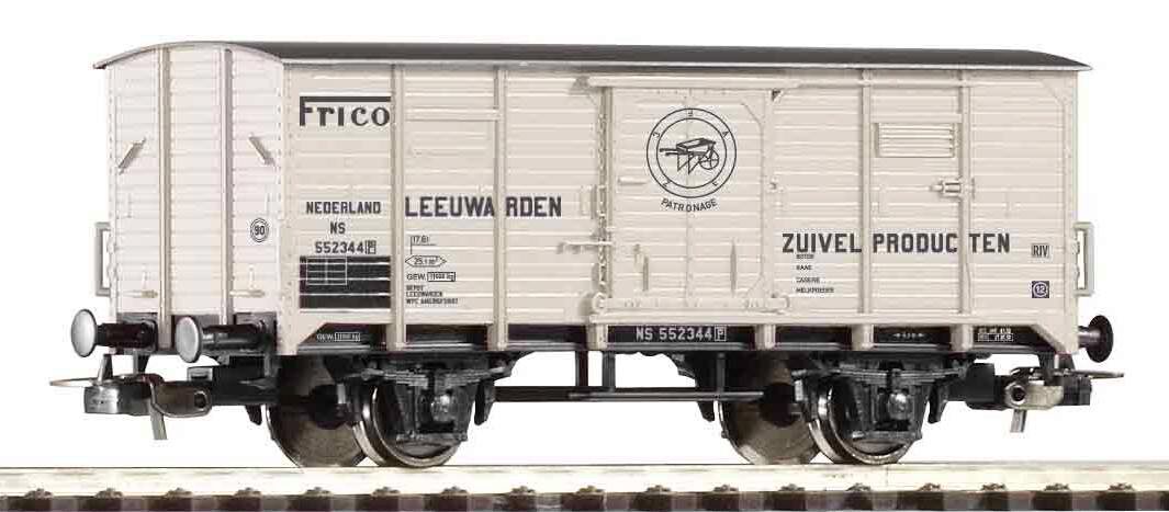 Neuheit 2024: Kühlwagen der Nederlandse Sporwegen (NS) mit dem Logo von Frico in Epoche III. Das Wagenmodell überzeugt durch konturenscharfe Bedruckung, separat angesetzte Teile und exzellente Rolleigenschaften.