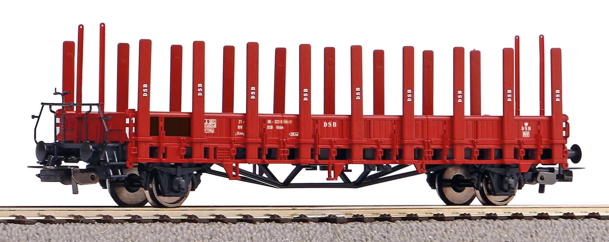 Neuheit 2024: Rungenwagen der DSB mit vorbildgerechter Beschriftung in Epoche III. Das Modell überzeugt durch ausgezeichnete Rolleigenschaften.