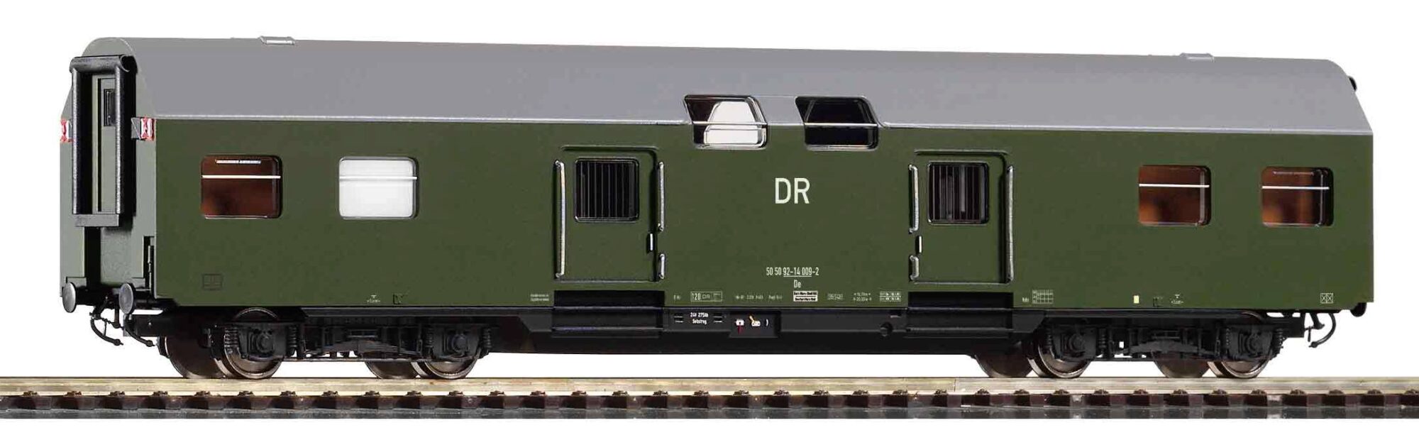 Neuheit 2024: Doppelstock-Gepäckwagen in der Ausführung der DR in Epoche IV. Der Wagen überzeugt durch eine vorbildgerechte Modellumsetzung mit konturenscharfer Bedruckung und Lackierung. Durch die glasklaren, bündig eingesetzten Fenster fällt der Blick auf die detaillierte Inneneinrichtung.