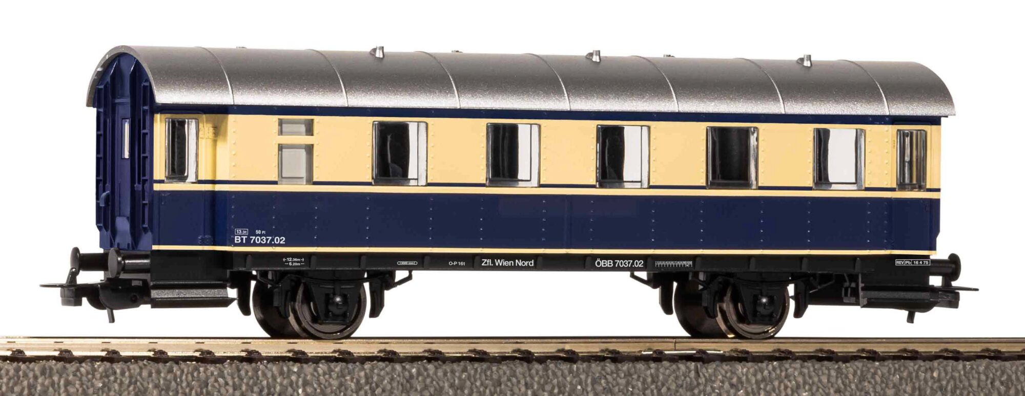 Neuheit 2024: Zweiachsiger Personenwagen der ÖBB in Epoche IV. Die glasklaren, bündig eingesetzten Fenster ermöglichen den Blick durch den Wagen. Weiterhin überzeugt das Modell durch exzellente Rolleigenschaften.