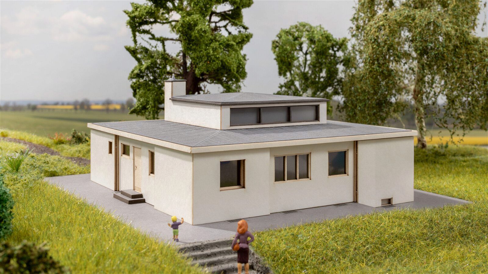 Der NOCH Laser-Cut Bausatz ist exakt im Architektur-Maßstab 1:100 umgesetzt und eignet sich damit auch hervorragend für die Verwendung in der Spur H0. Der Bausatz wird aus Karton präzise gelasert. Bei der Verpackung wird auf unnötiges Plastik verzichtet. Eine ausführliche Bauanleitung und der passende Laser-Cut Spezial-Kleber liegen bei.