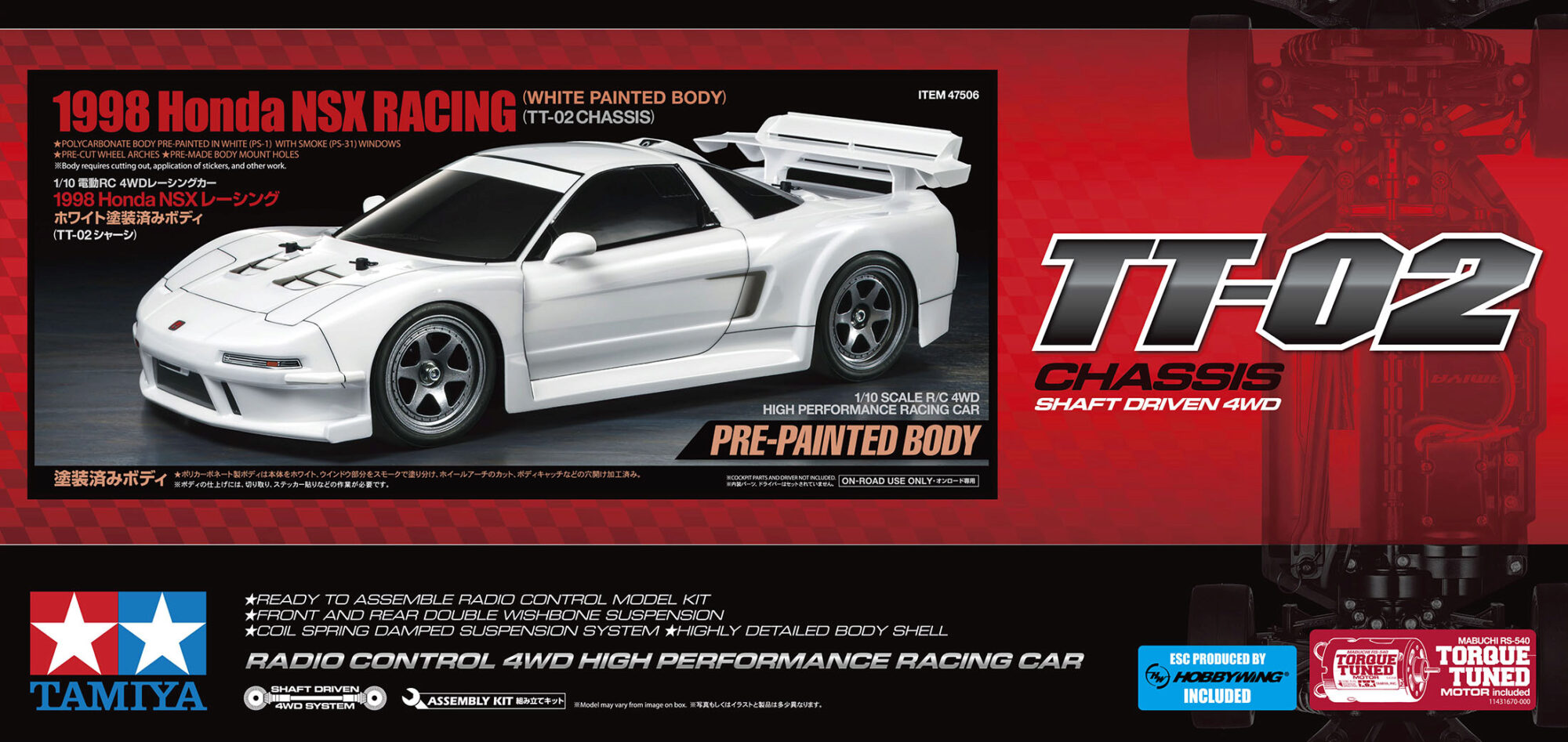 TAMIYA präsentiert einen der legendärsten Supersportwagen auf dem TT-02 Chassis: Den Honda NSX in der 1998er Version!