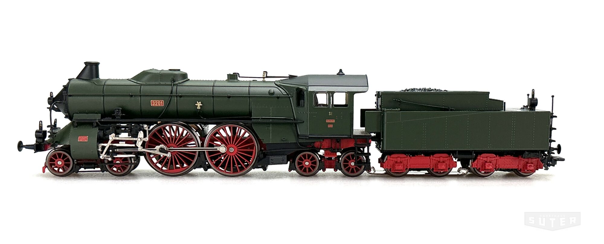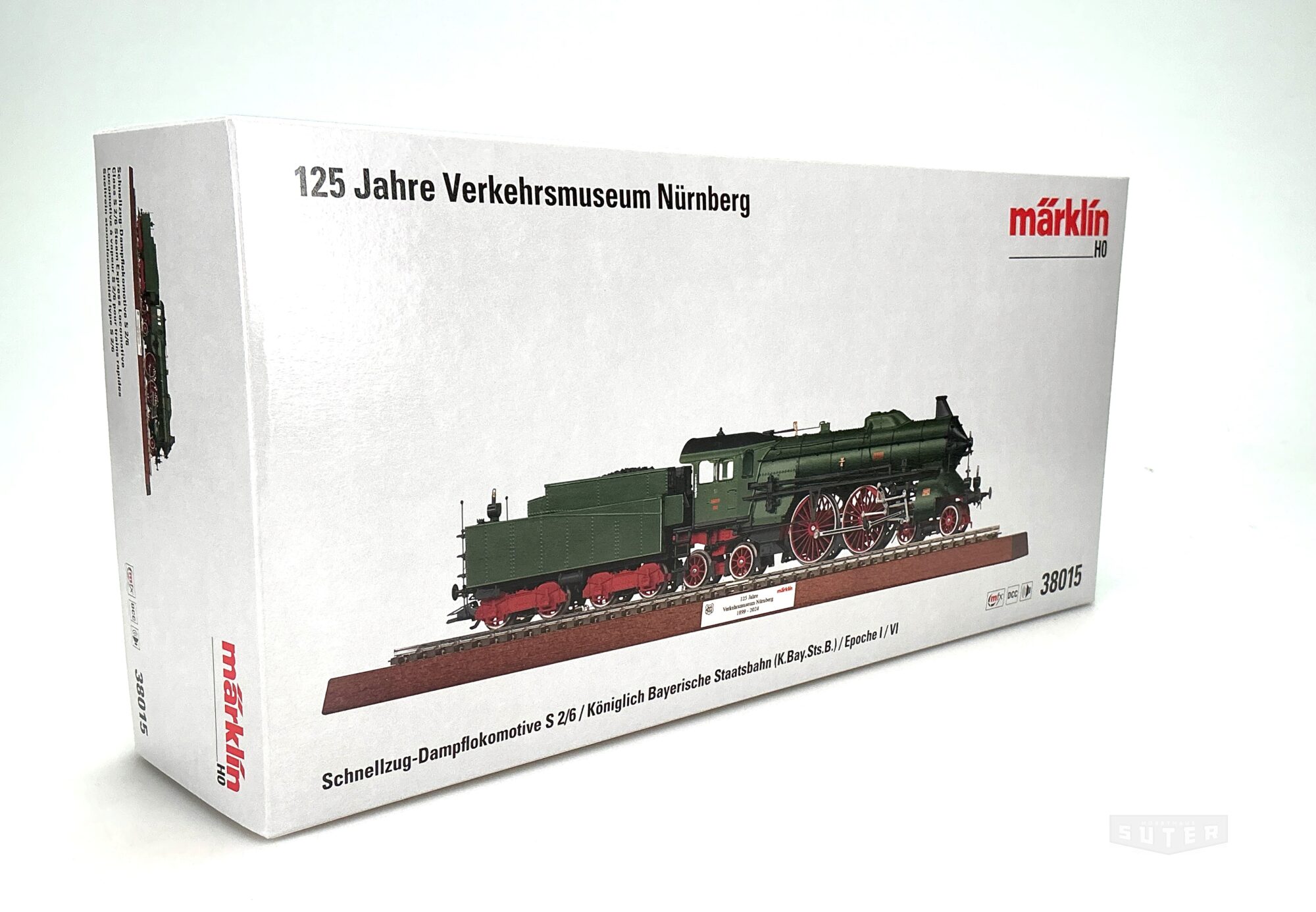 Vorbild: Schnellzug-Dampflokomotive der bayerischen Gattung S 2/6 in grüner Grundfarbgebung mit schwarzer Rauchkammertür und rotem Fahrwerk. Nachbildung der erhaltenen Lokomotive im Verkehrsmuseum Nürnberg. Musealer Zustand als Lokomotive der Königlich Bayerischen Staatsbahn (K.Bay.Sts.B.) der Epoche I