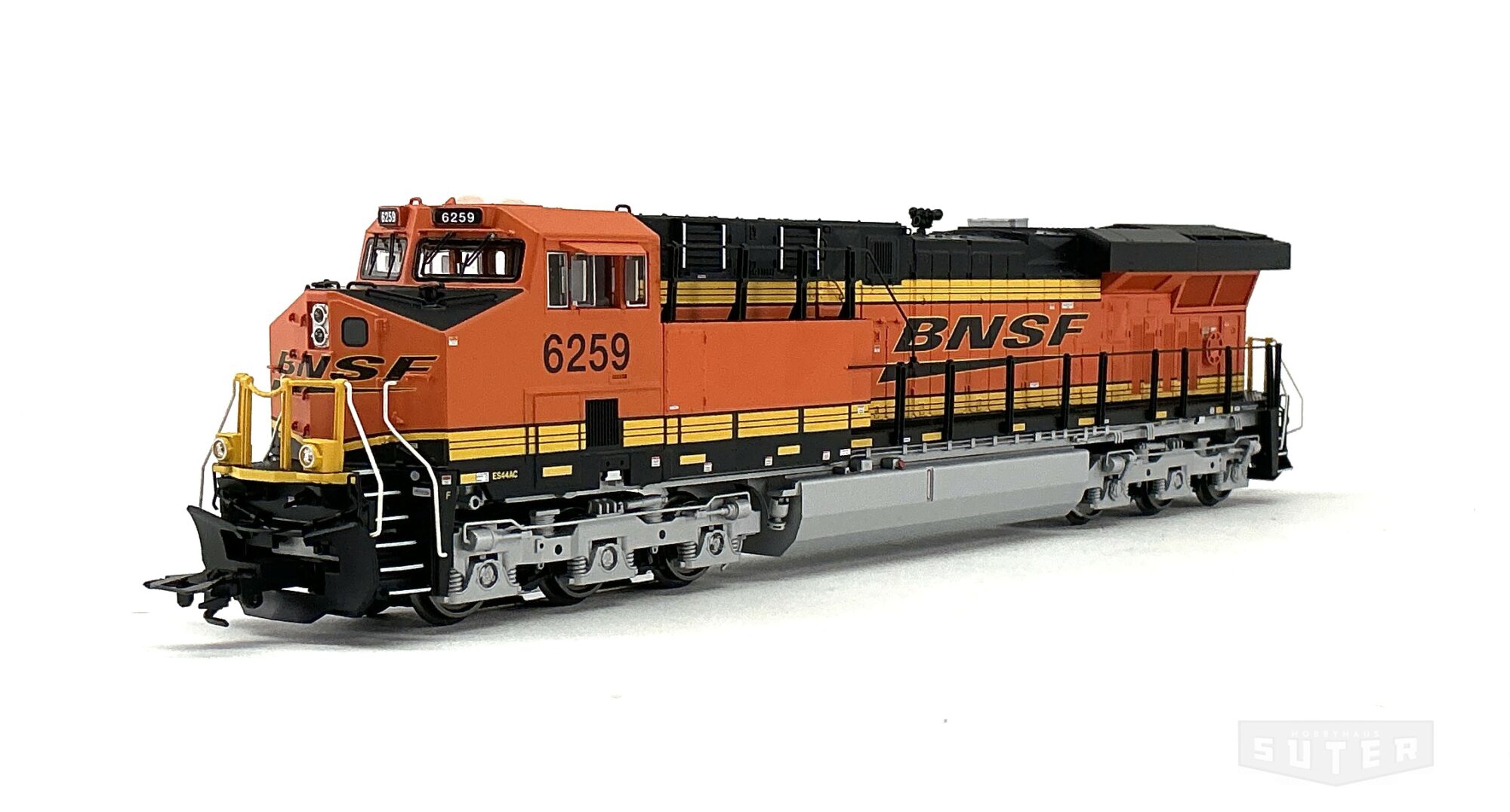 Vorbild: Schwere dieselelektrische Güterzuglokomotive Typ General Electric ES44AC der Burlington Northern Santa Fe, LLC (BNSF). Orange Grundfarbgebung. Betriebsnummer 6259. Aktueller Betriebszustand