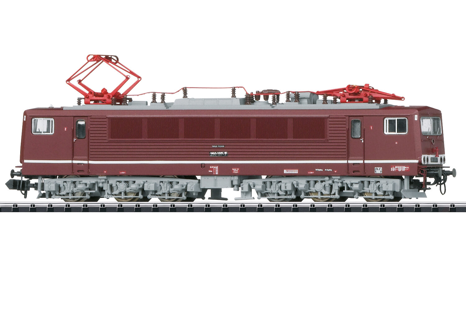 Vorbild: Elektrolokomotive 250 137-7 der Deutschen Reichsbahn (DR) im Zustand um 1987. Achsfolge Co'Co', Baujahr ab 1974.