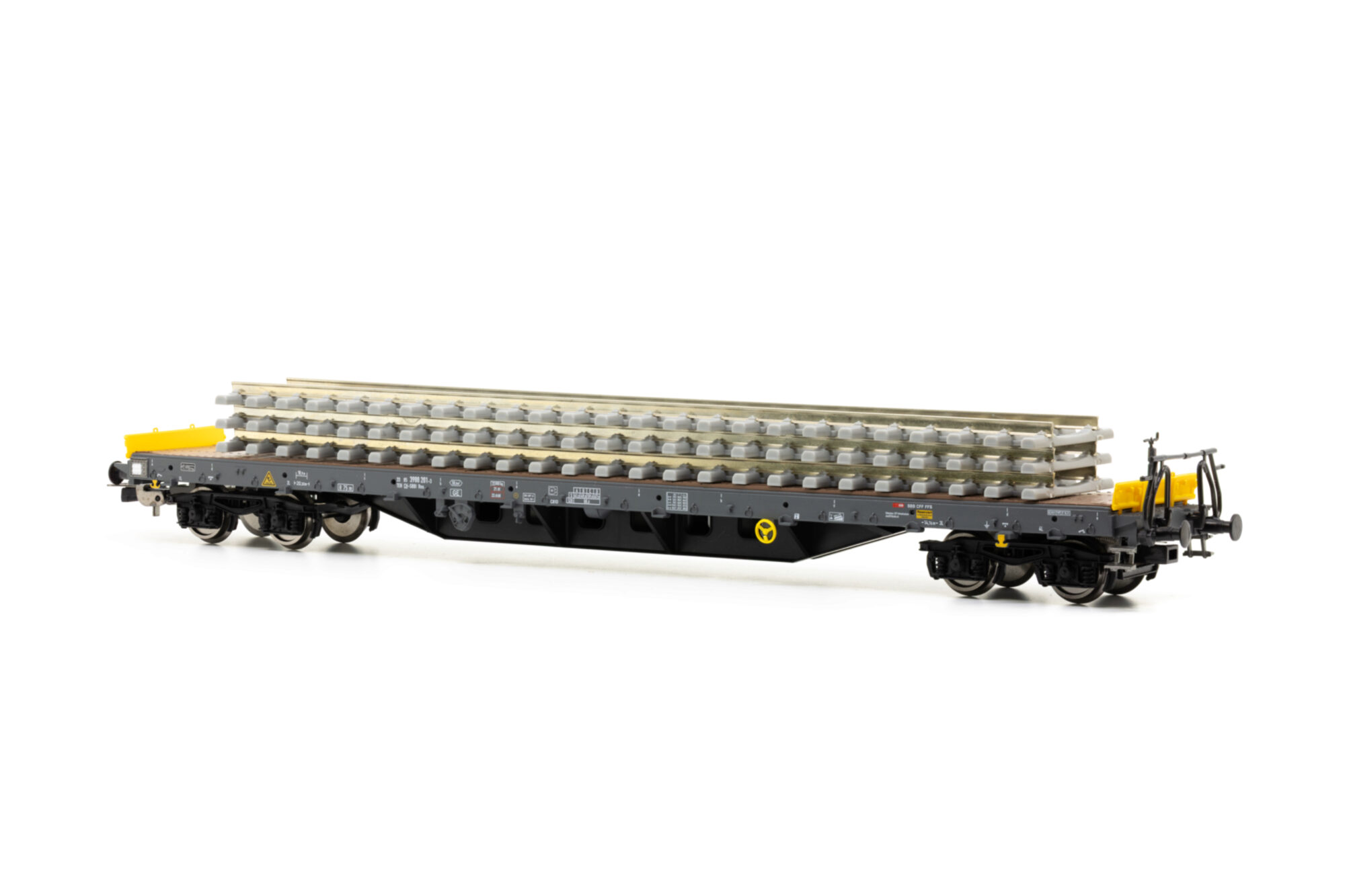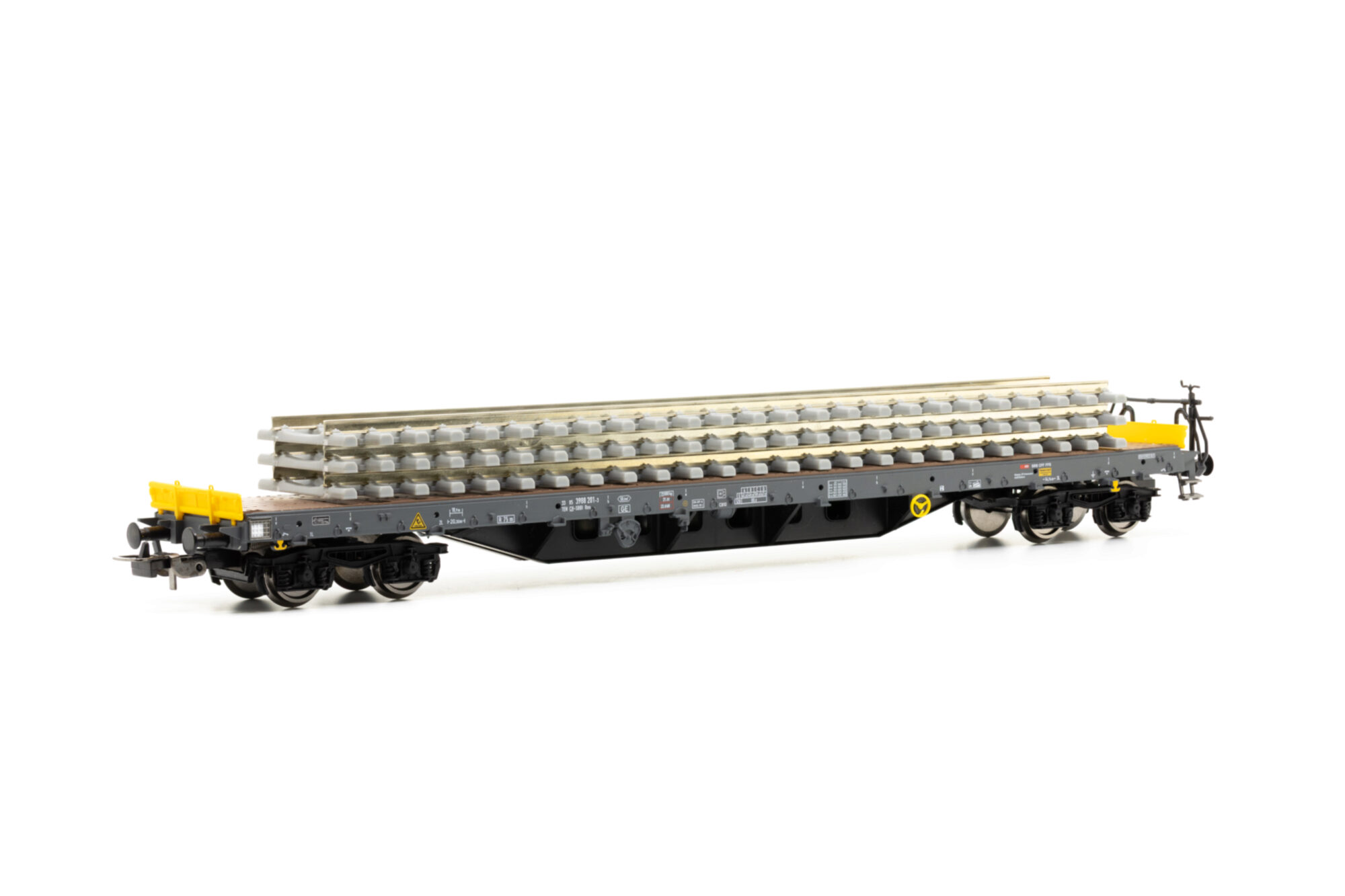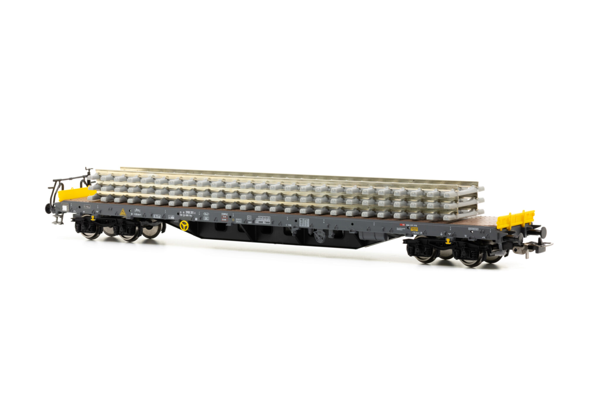 SBB Flachwg. Bauzug CH-SBB I beladen mit Betonschwellenstapel Ep VI