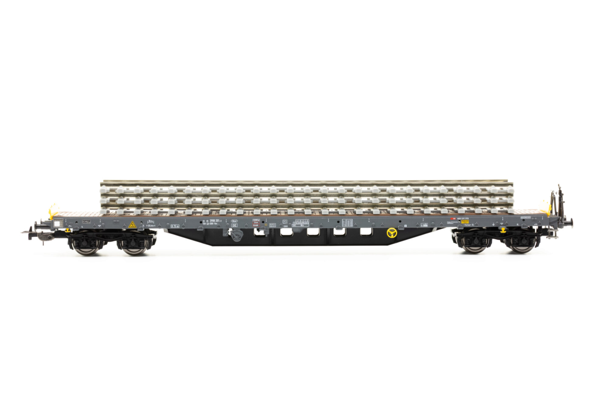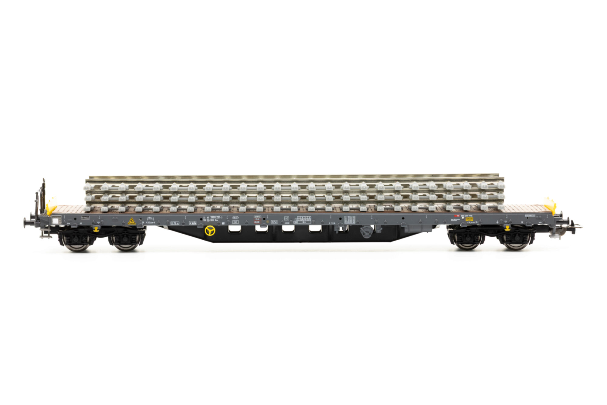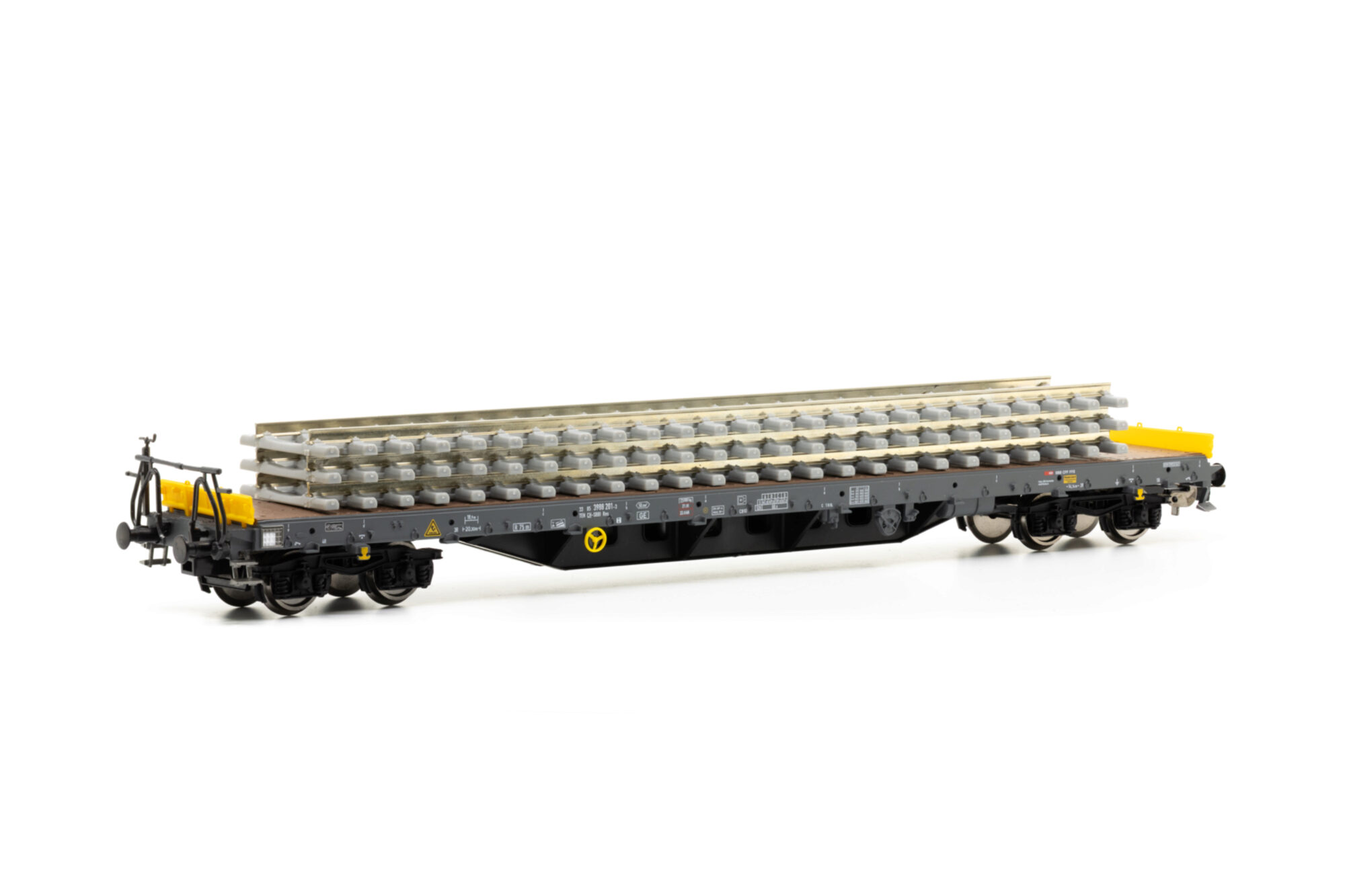 SBB Flachwg. Bauzug CH-SBB I beladen mit Betonschwellenstapel Ep VI