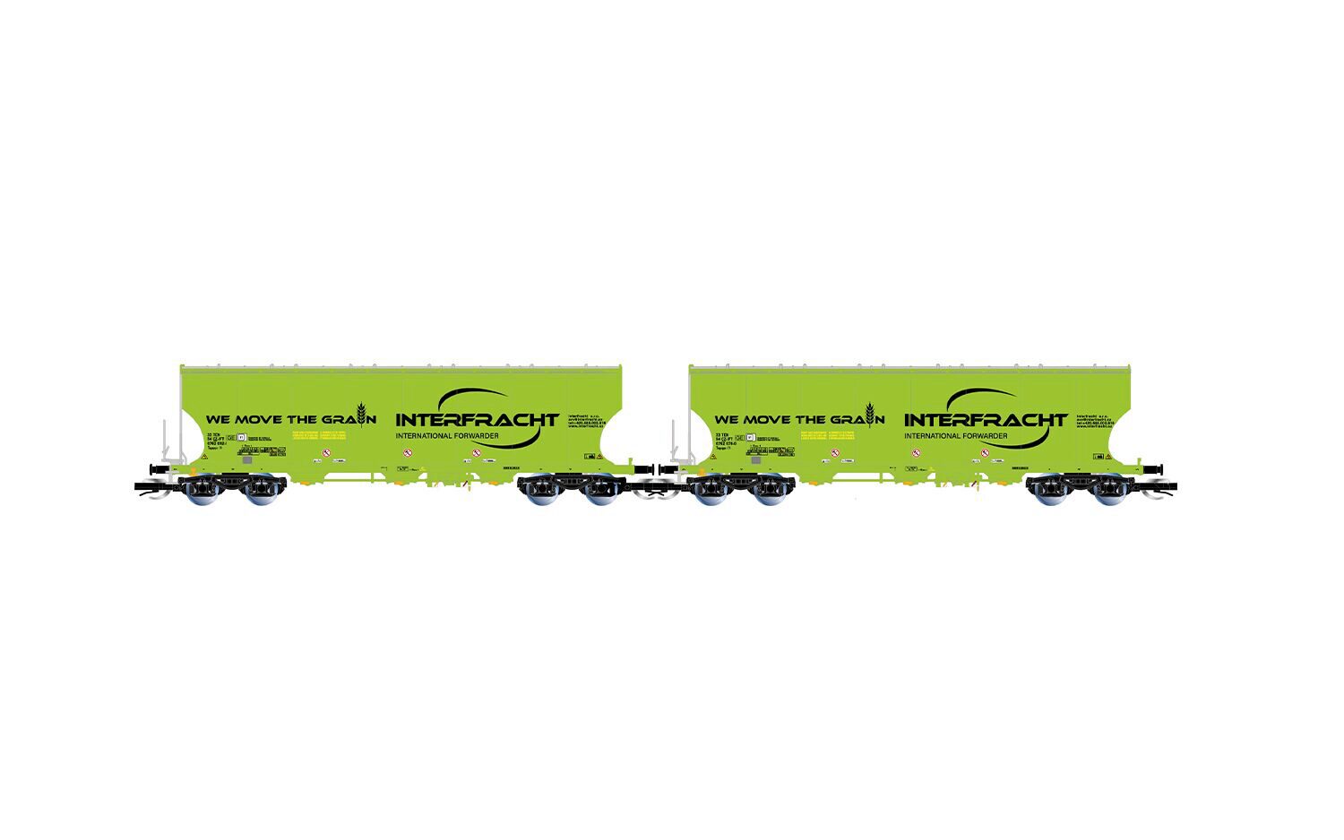 CZ-interfracht 2-teiliges Set 4-achsiger Getreidesilowagen neongrün Ep. VI