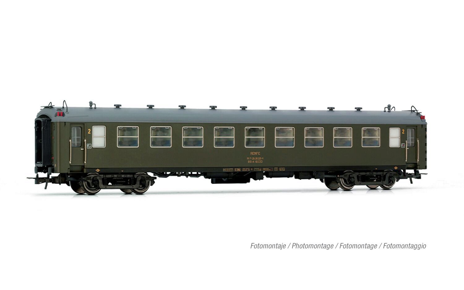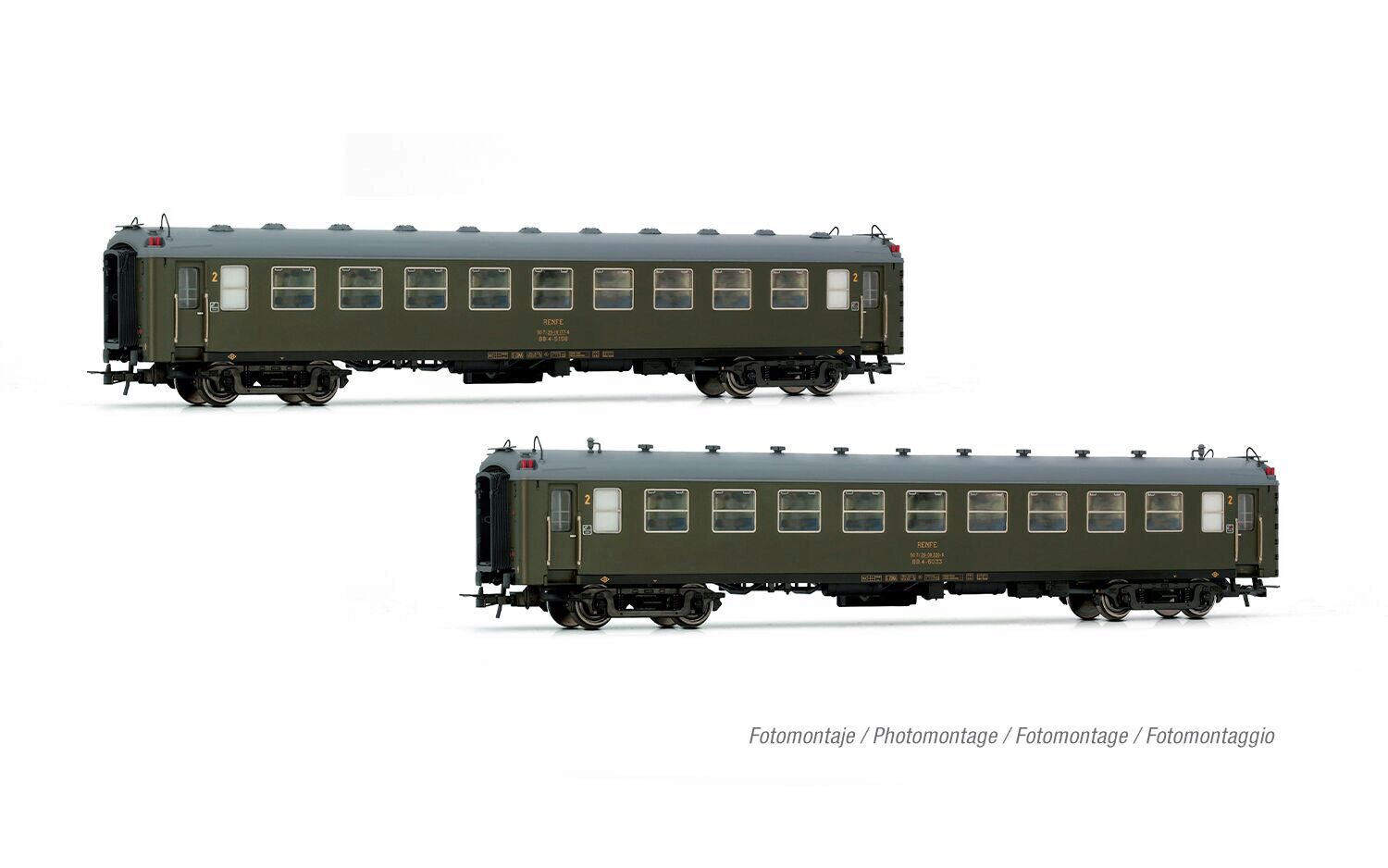 RENFE 2-teiliges Set Personenwagen 5000 BB4 2. Klasse mit Faltenbälgen olivgrün Ep. IV