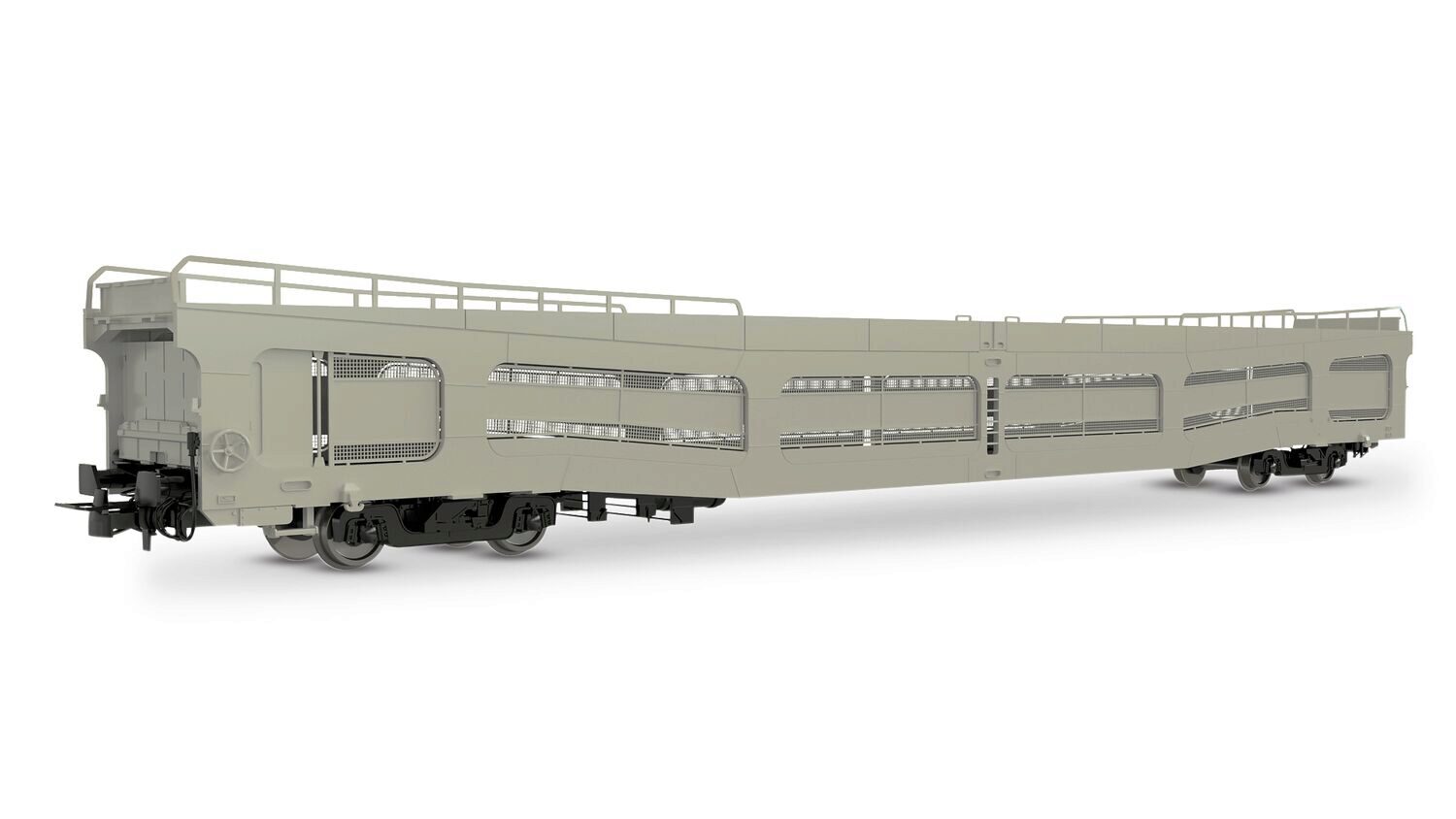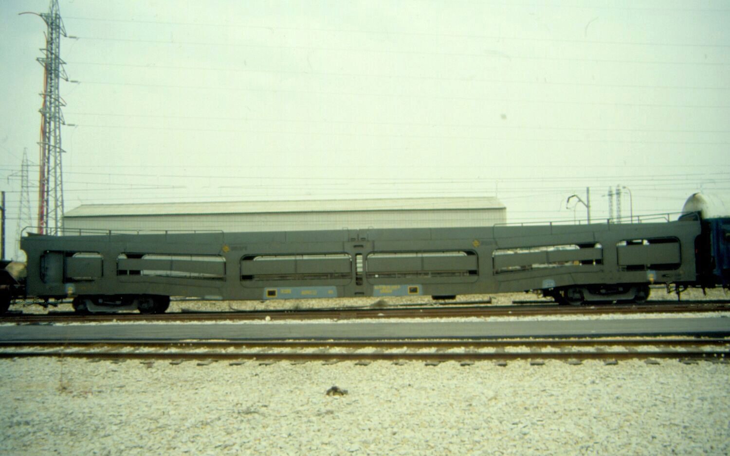 RENFE 4-achsiger Autotransportwagen DDMA grau mit seitlichen. Schutzgittern Ep. IV