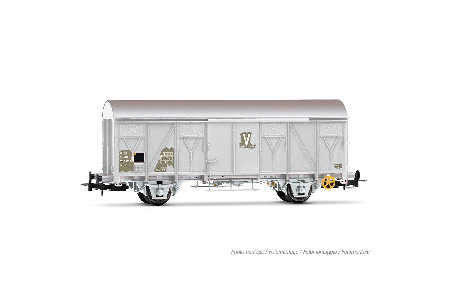SNCF 2-achsiger gedeckter Wagen Typ Us (ex G4)V in grau Bahnhof Bretigny Ep. IV