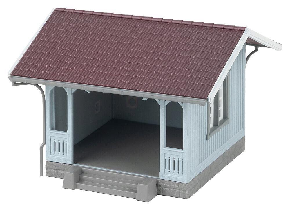 Klein, aber fein! Das himmelblaue Wartehäuschen mit einer charmanten Holzfassade eignet sich hervorragend als Dekoration für Ihre Modelleisenbahn. Es ergänzt zudem perfekt den Bahnhof Oberstenfeld und als kleines Detail verschönert das Modell jede Bahnszenerie.
