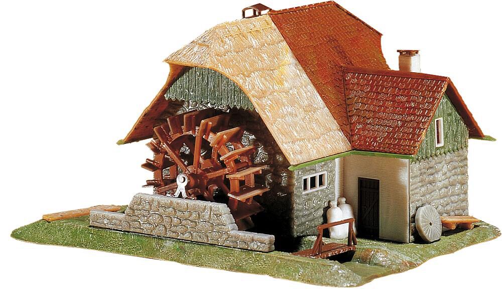 Leise plätschert das Wasser über das Mühlenrad der kleinen Schwarzwaldmühle und verleiht der Miniaturwelt einen Hauch von gemütlichem Charme im typischen Schwarzwald-Stil. Die harmonische Atmosphäre lädt dazu ein, einen Moment innezuhalten und die malerische Szenerie in vollen Zügen zu genießen.