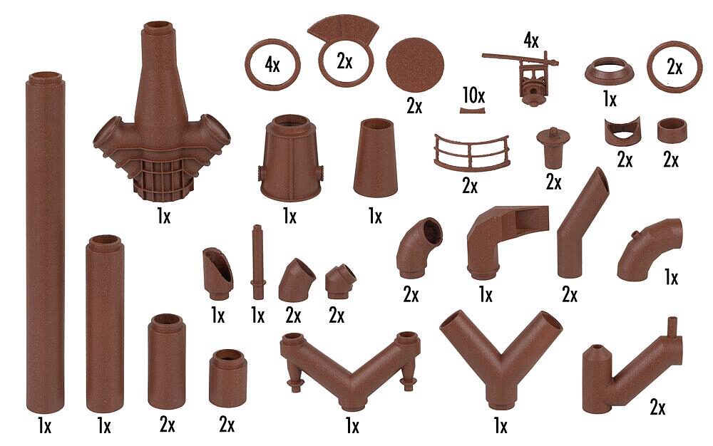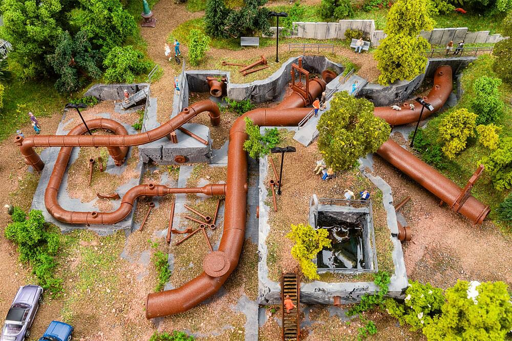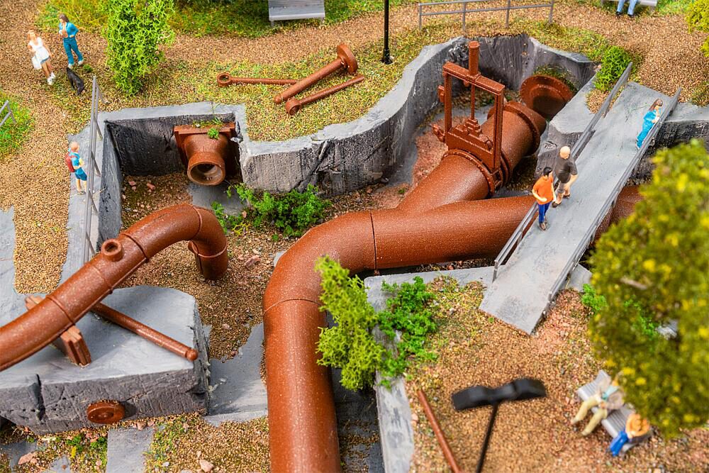 Mit diesem vielseitigen Rohrleitungs-Set wird die Gestaltung einer realistischen Schwerindustrielandschaft zum Kinderspiel! Unterschiedlich lange, gerade und gebogene Rohrleitungen in verschiedenen Durchmessern ermöglichen es Ihnen, im Handumdrehen ein authentisches Rohrsystem in Ihrer Miniaturwelt zu erschaffen. Die frei kombinierbaren Teile bieten unzählige Möglichkeiten und lassen sich zudem perfekt mit dem »Rohrleitungs-Set« (Art. 180327) und dem Set »Gasometer mit Rohrleitungen« (Art. 130157) erweitern. So entsteht eine beeindruckende Industrieanlage, die Ihre Modelllandschaft bereichert!