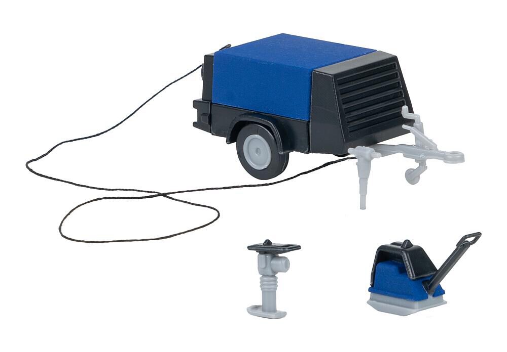 Umgeben von Baustellenlärm und dem Dröhnen der Maschinen ist der Bauarbeiter mit seinem Kompressor fleißig bei der Arbeit. Dieses bewegliche Modell bringt lebendige Dynamik auf jede Baustelle und verleiht der Szenerie einen Hauch von Realismus. Dank der im Set enthaltenen passenden Baumaschinen und eines Motors wird die Miniaturwelt zum Leben erweckt. Ein unverzichtbares Element, das jedes Diorama bereichert!
