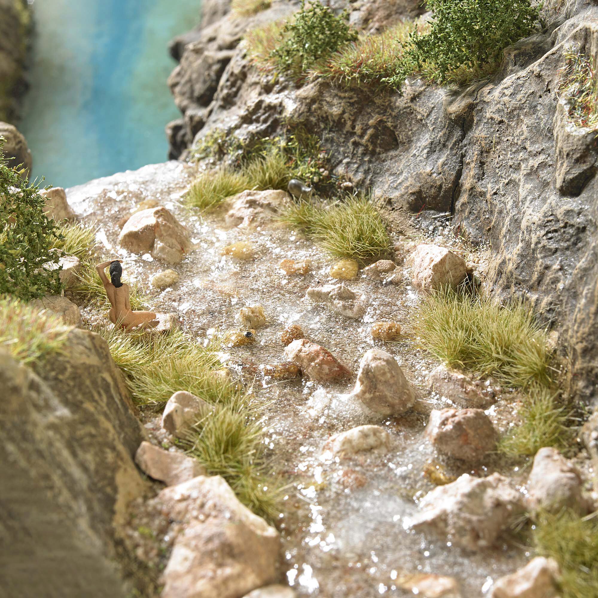 Kristallklare Gewässer, wie von der Natur erschaffen! Einfach zu gestalten mit dem flüssigen Busch Modellierwasser. Auf den vorbereiteten Untergrund (in Blautönen bemalt, evtl. mit Sand, Steinchen, Wasserpflanzen bedeckt) das Wasser schichtweise aufgießen.