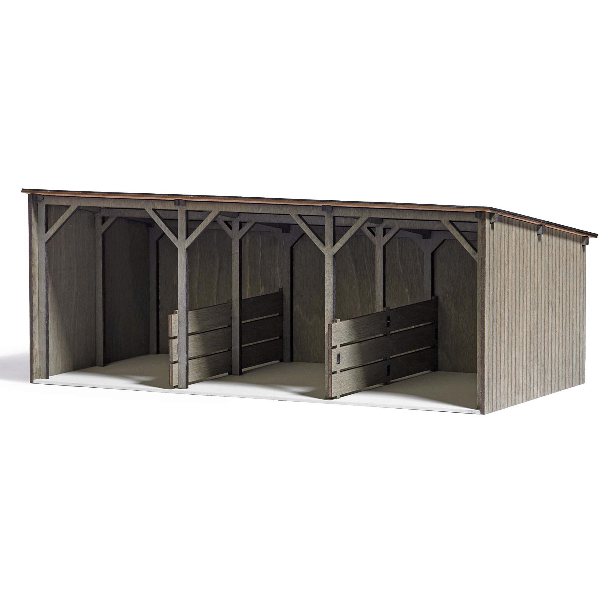 Einseitig geöffneter Unterstand für landwirtschaftliche Fahrzeuge und Zubehör auf einem Feld oder Weide. Auch als Bootswerkstatt an einem See u.v.m. geeignet.