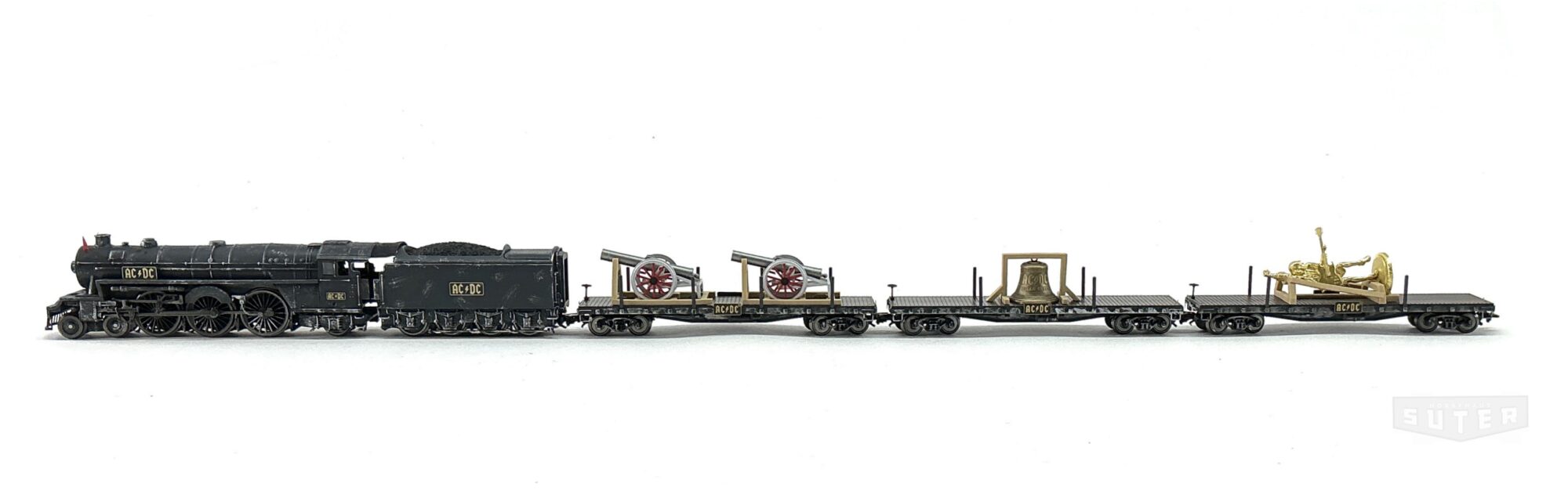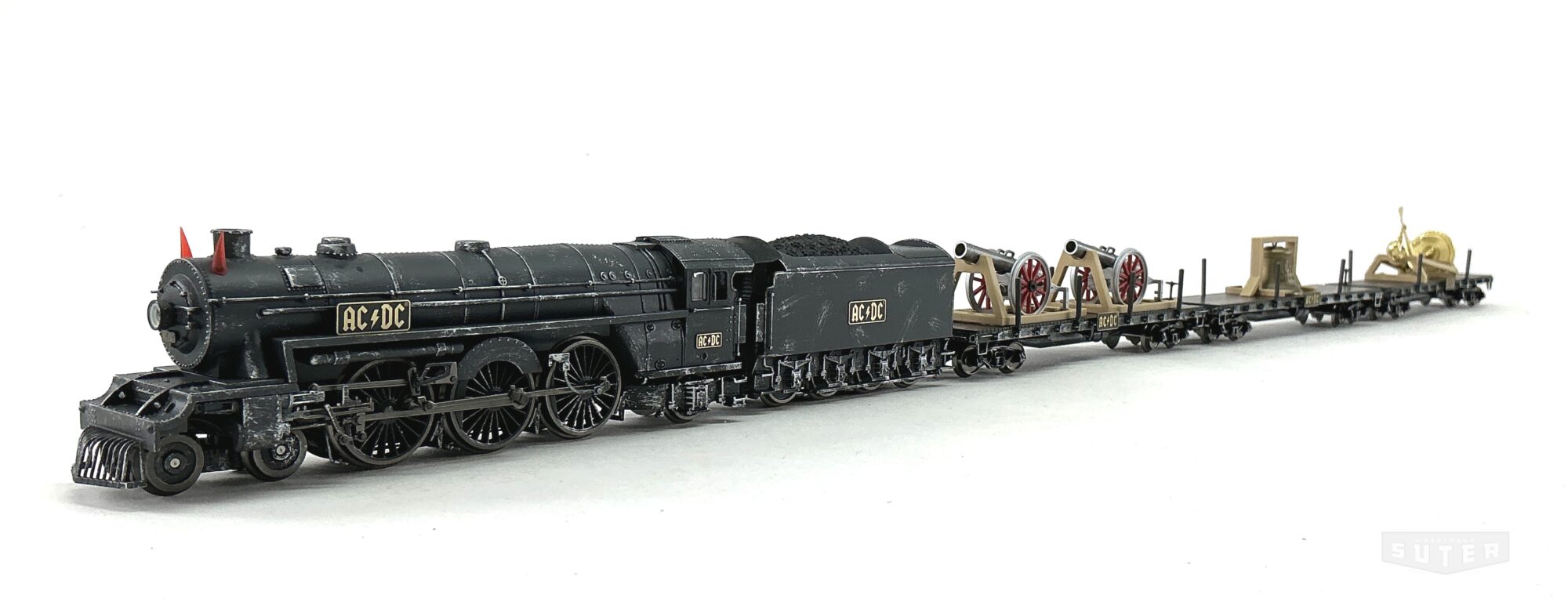 Vorbild: Schlepptender-Dampflokomotive Black Ice, die der Bühnenkulisse der AC/DC Black Ice World Tour 2008 - 2010 nachempfunden ist