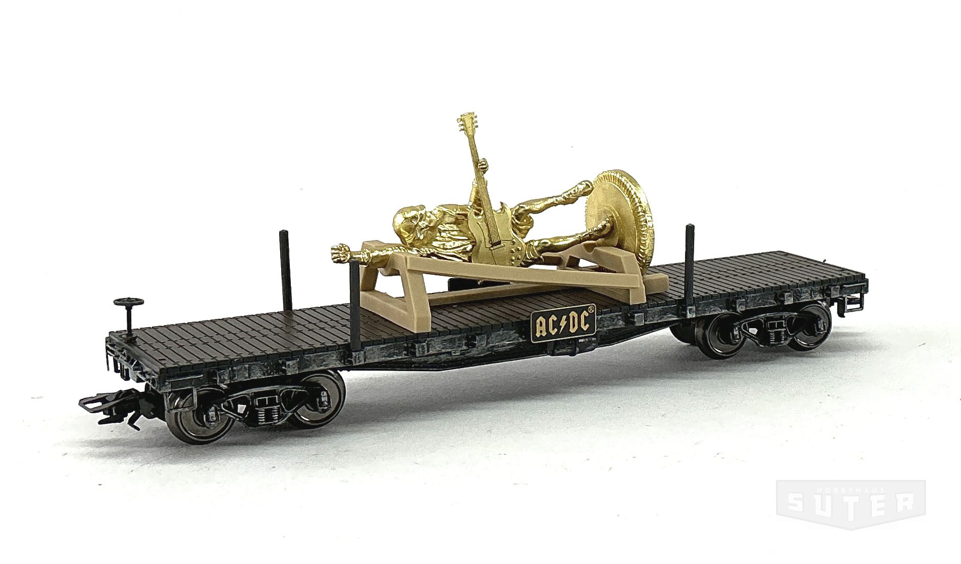 Vorbild: Vierachsiger Flachwagen nach amerikanischer Bauart. Eingesetzt zum Transport einer Statue
