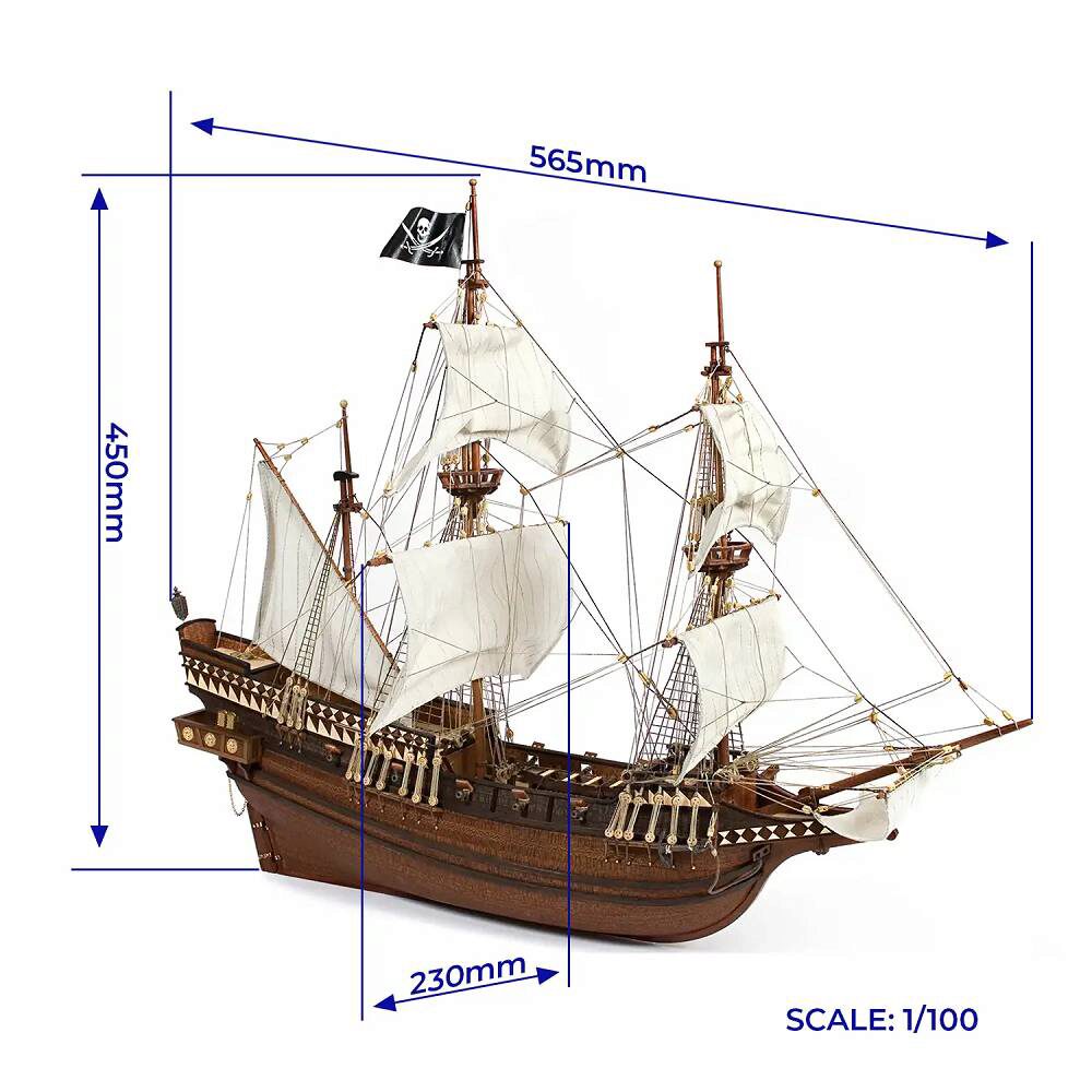 Das Schiffsmodell Buccaneer entspricht einem der damaligen Schiffe, die auf Kaperfahrt unterwegs waren. Mit diesem Modellboot wird eine der dunkelsten Teil des Marinegeschichte zu entdecken, zu genießen sein Hobby zum Modellieren.