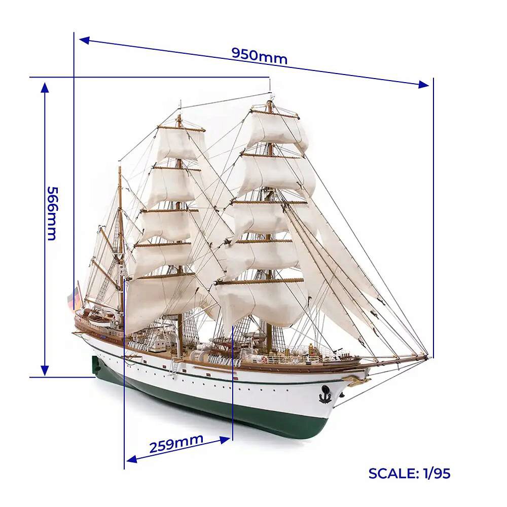 Das Modell ist eine detailgetreue Nachbildung des Originals. Der Bausatz von OcCre enthält bis ins kleinste Detail alle Einzelteile, die für das Zusammenbauen des Schiffsmodells notwendig sind. Wir wünschen Ihnen viel Spaß beim Zusammenbauen unseres Schiffsmodells Segelschulschiff der deutschen Marine Gorch Fock.