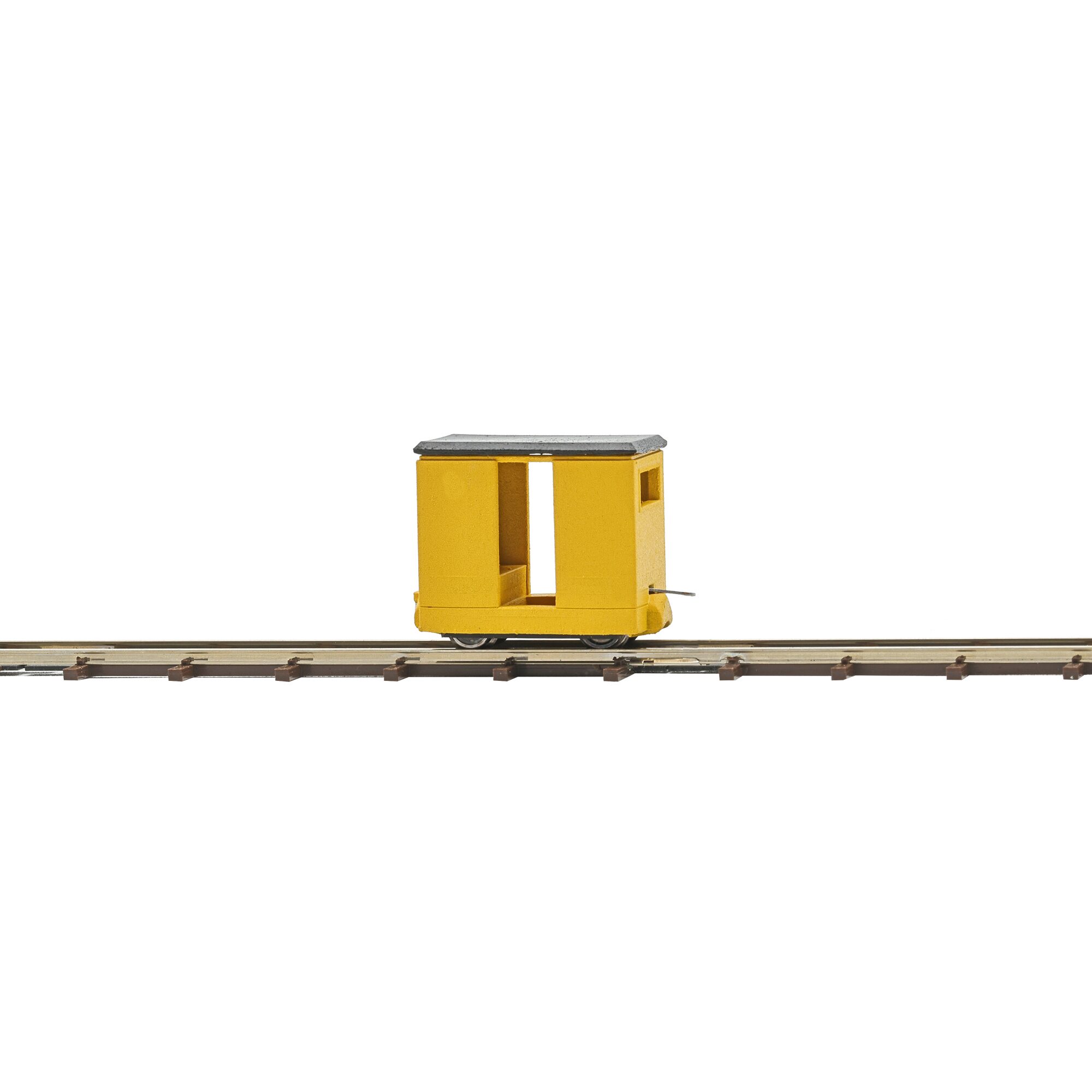 Zweiachsiger Wagen mit geschlossenem Aufbau und seitlichem Einstieg. Innenausstattung mit Sitzbänken. Mit Stangenkupplung zur Zugbildung mit weiteren Mannschaftswagen oder Grubenbahn-Loks.